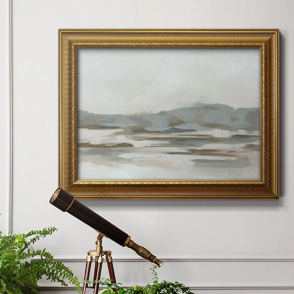Neutral Coast II Premium Framed Canvas- Ready to Hang A Premium Framed Canvas created to last. Framed in distressed wood and available in an array of sizes and colors Featuring a beveled a solid wood stretcher bar, each piece comes ready to hand 3 SIZES AVAILABLE 16''X20'' - Overall Size 18'X27'' - Overall Size 24''x36'' - Overall Size Each piece is made to order. Each piece comes with hanging hardware. Made in the USA Ready to Hang Giclee Paper Print Acrylic Glass Beveled Matt Board