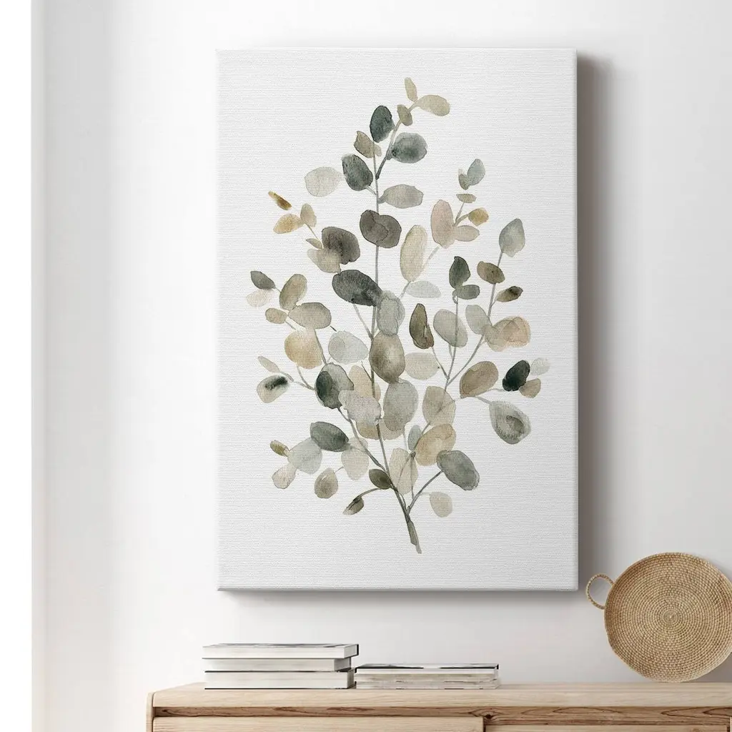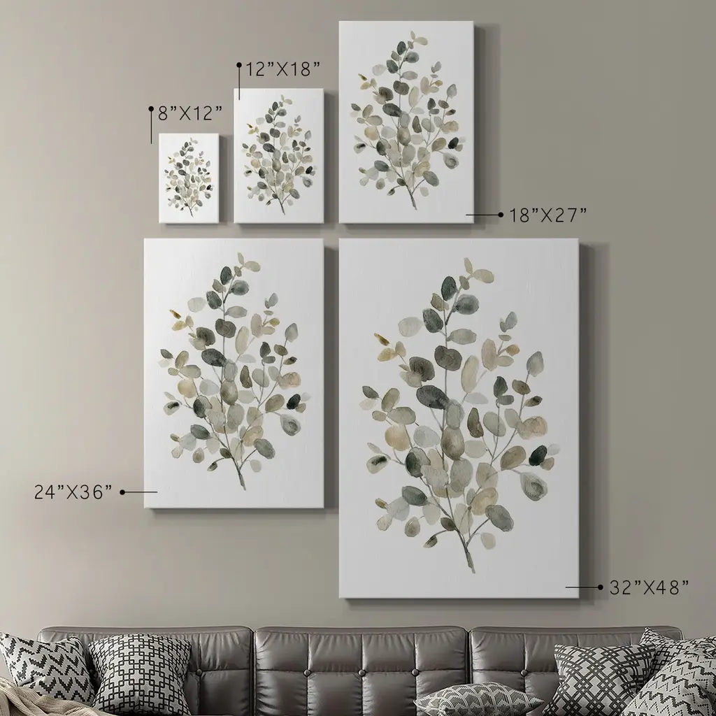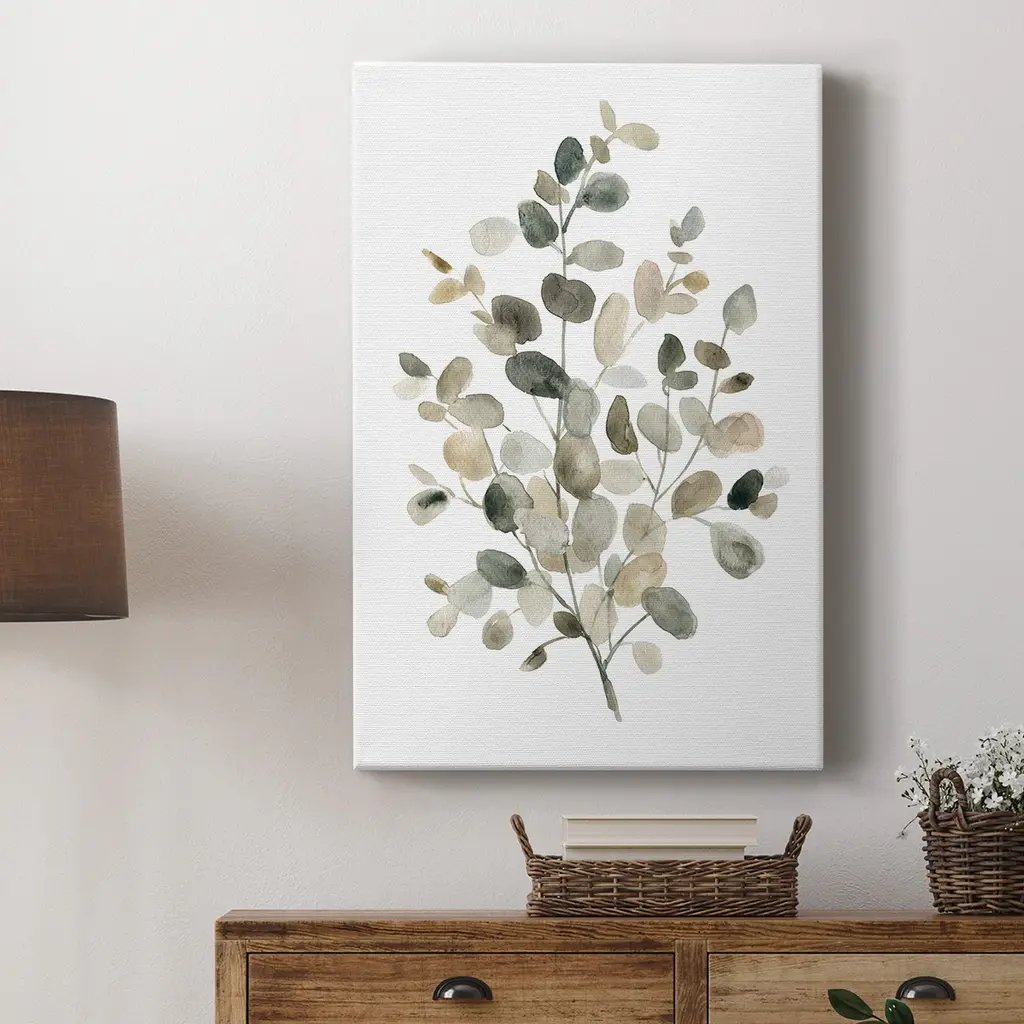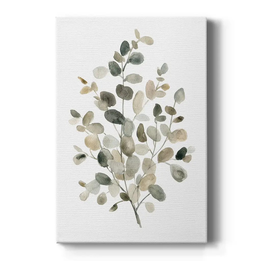 Neutral Eucalyptus I Premium Gallery Wrapped Canvas - Ready to Hang A premium hang stretched gallery wrapped canvas print created to last. Featuring a beveled a solid wood stretcher bar, each piece comes ready to hang 6 SIZES AVAILABLE 8''X12'' - Overall Size 12'X18'' - Overall Size 18''x27'' - Overall Size 24''x36'' - Overall Size 32''x48'' - Overall Size 40"x60" - Overall Size Each piece is made to order. Built to Last Each piece comes ready to hang Solid wood stretcher Fade and Water resistant Made domestically