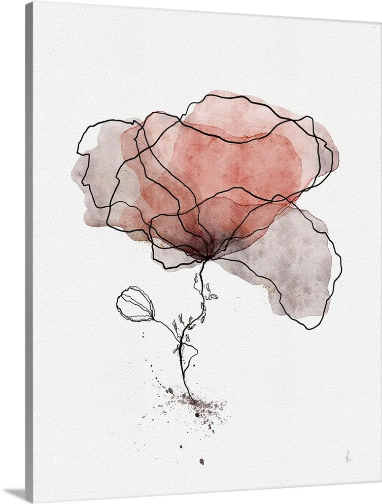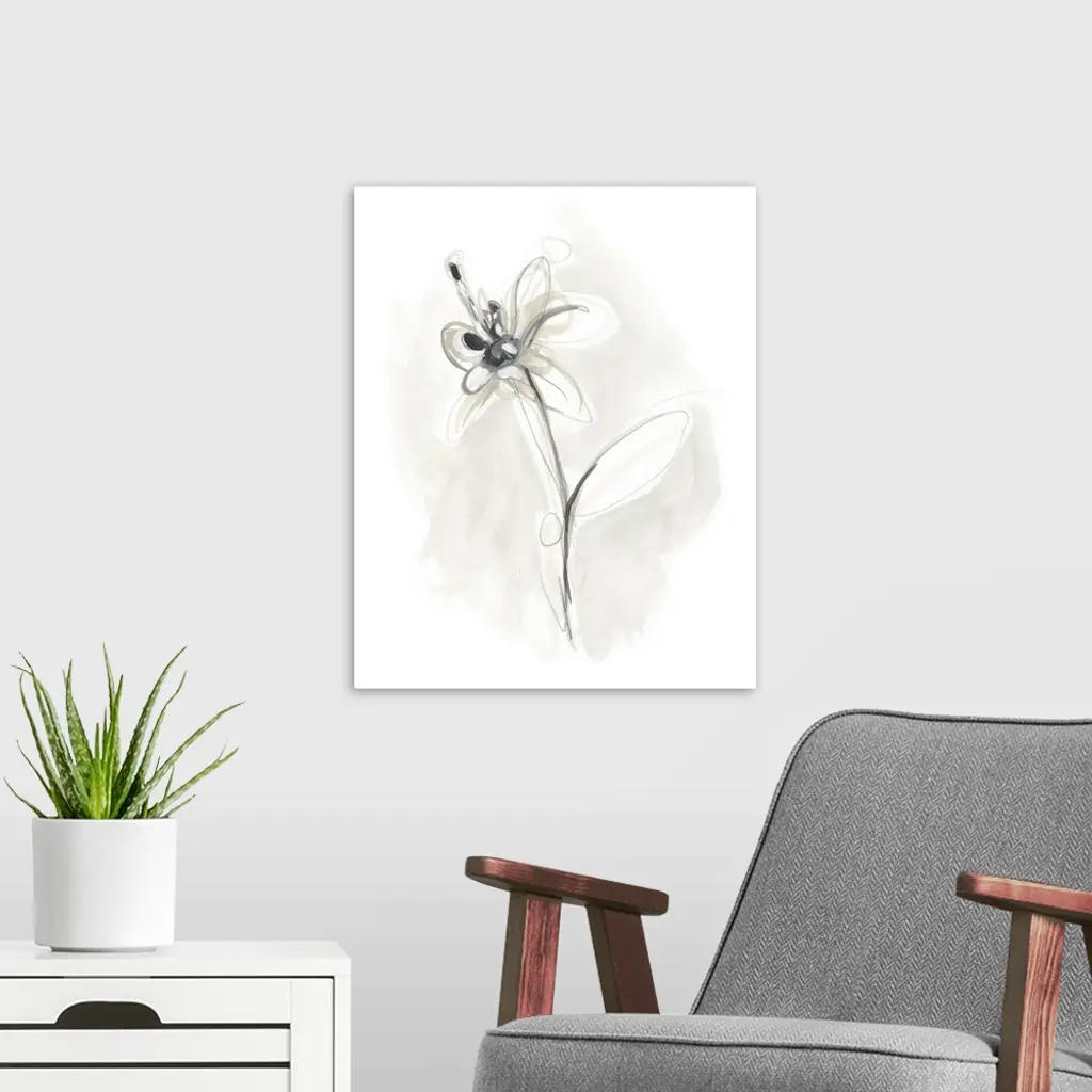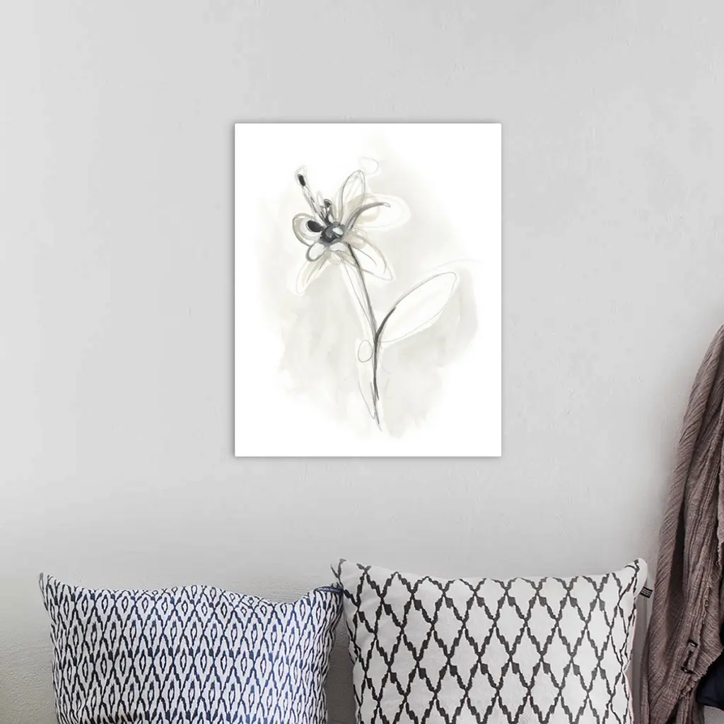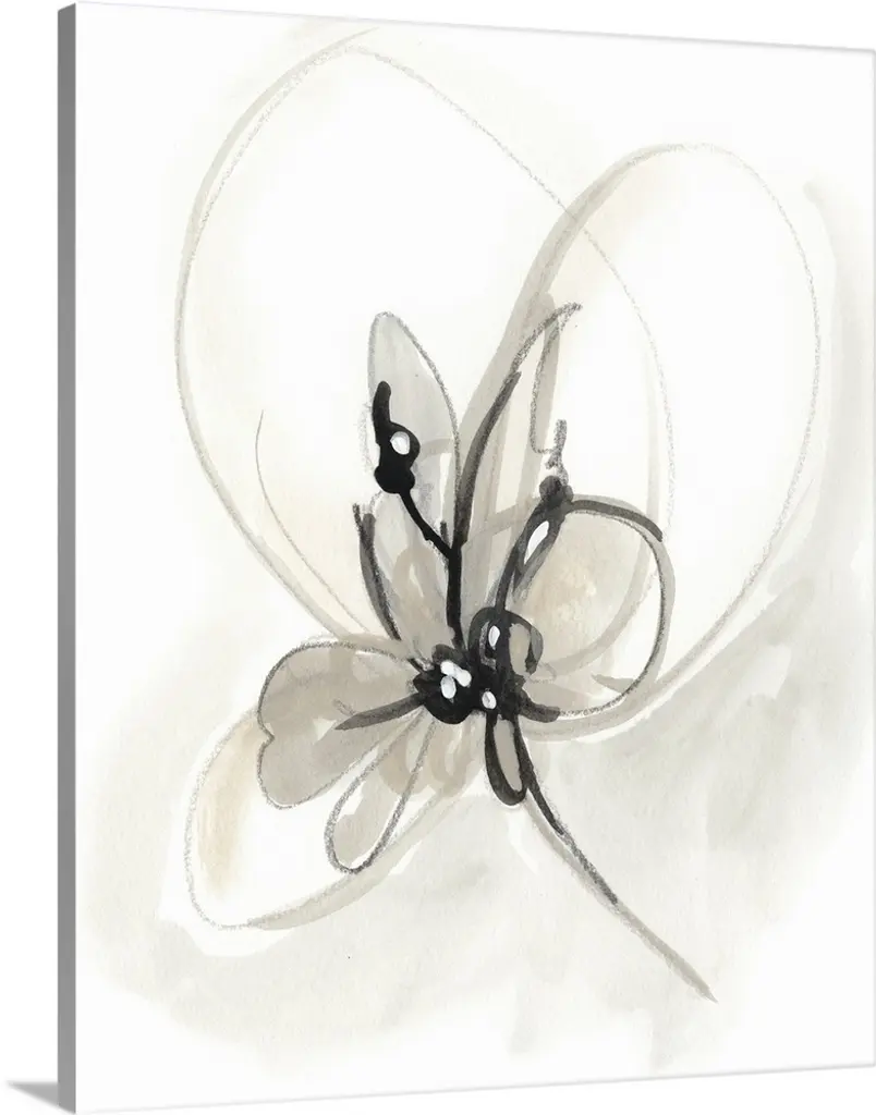 Circular brush strokes construct a gestural flower in neutral tones in this contemporary artwork.