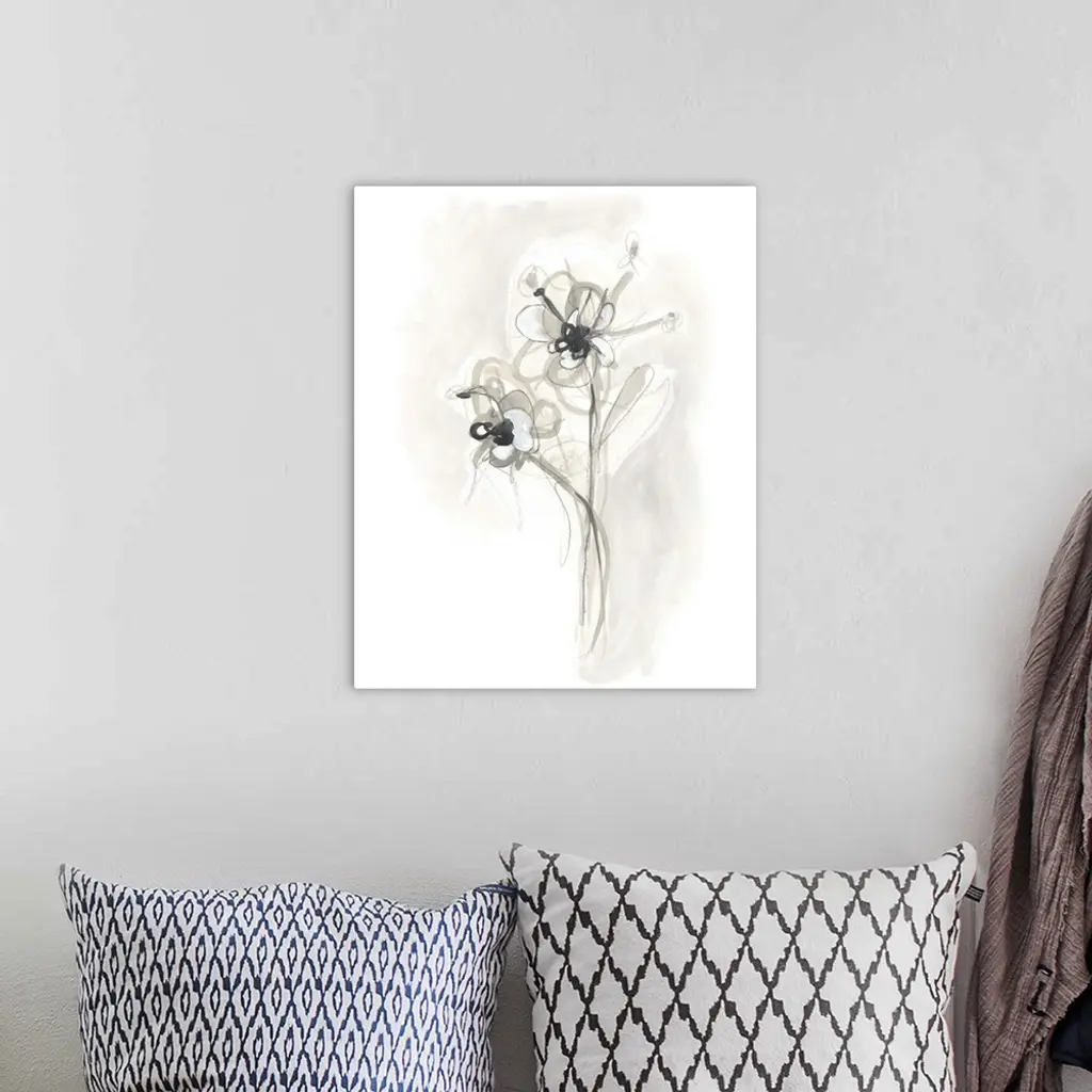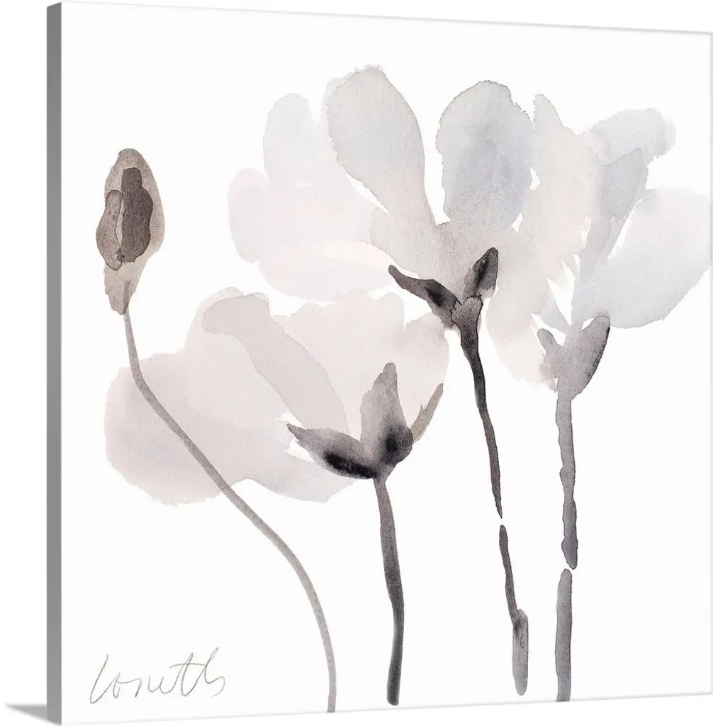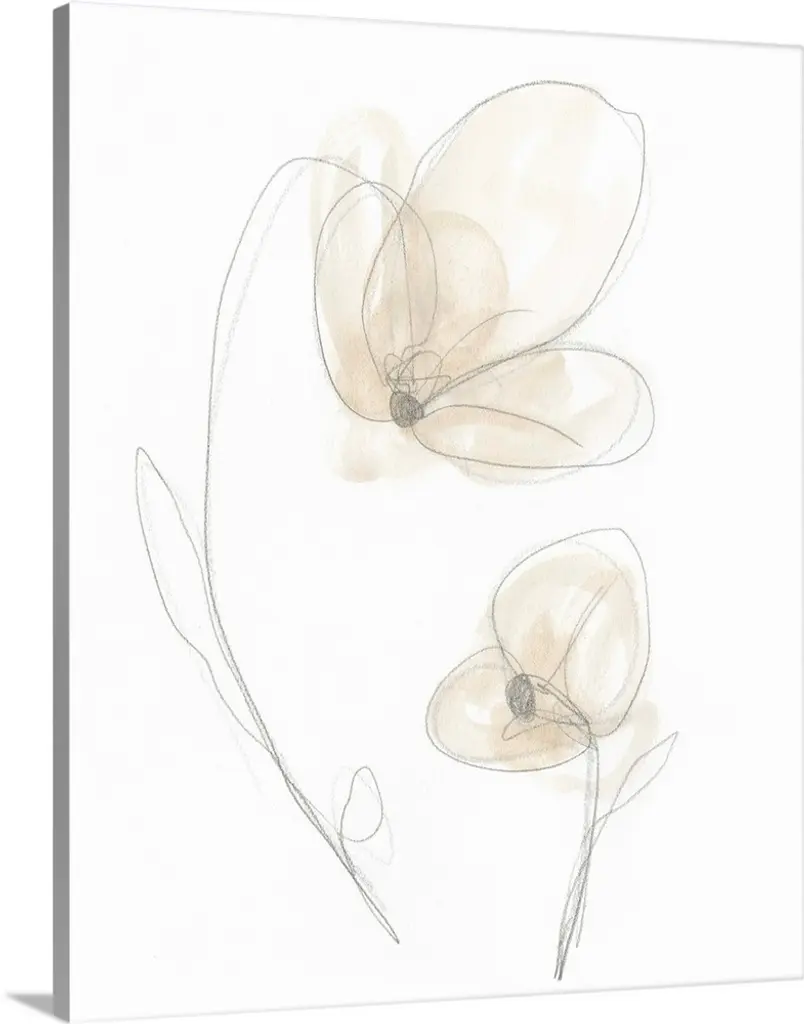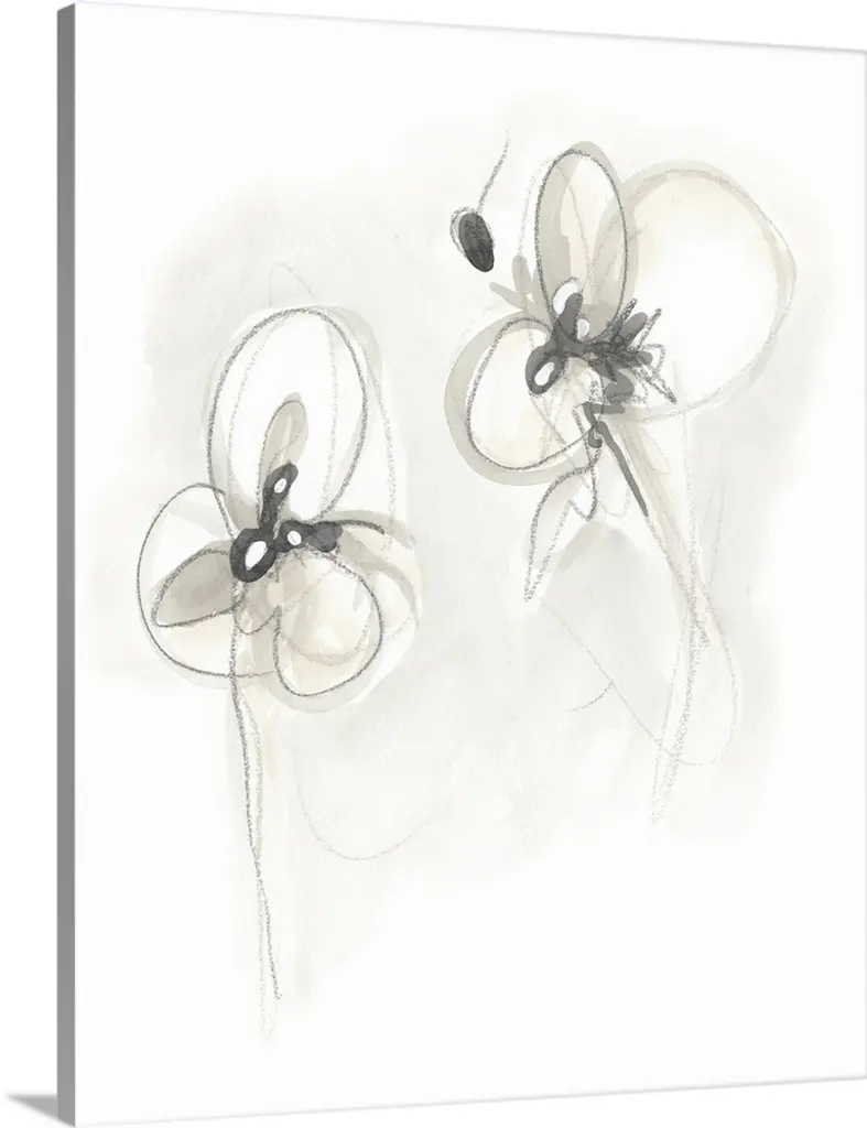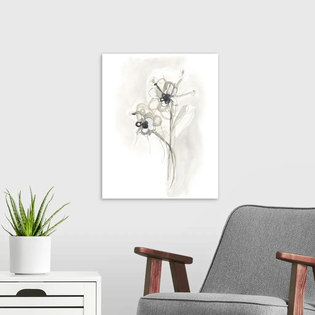 Circular brush strokes construct gestural flowers in neutral tones in this contemporary artwork.