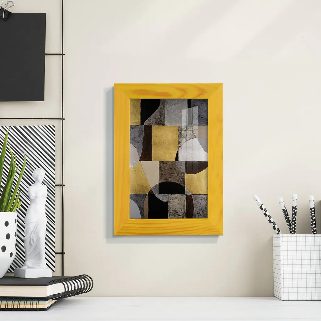 Neutral Framework Ii -Framed Print W/glass-Cherry Red - 12x15 - Yellow