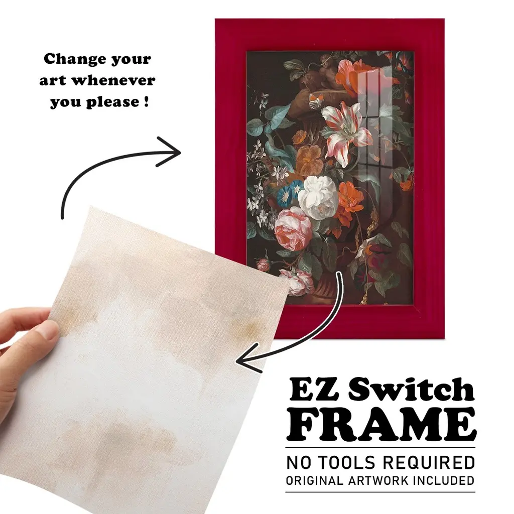 Neutral Glow II -EZ SWITCH Framed Print w/glass-Cherry Red A delightful, framed print. Featuring a solid wood frame with real wood glass. This premium print is giclee quality. In addition, every frame features a removable back and table top stand. This allows you to change your art in the future or to just stand the art on a table for a new look. We are sure you'll enjoy our new series of EZ SWITCH Framed Art. Solid Wood Frame Real Glass Removable / Replaceable Art Built in Tabletop Stand Sizes range from 4x6 up to 12x15 - buy just one or pair them up as sets as you see fit.