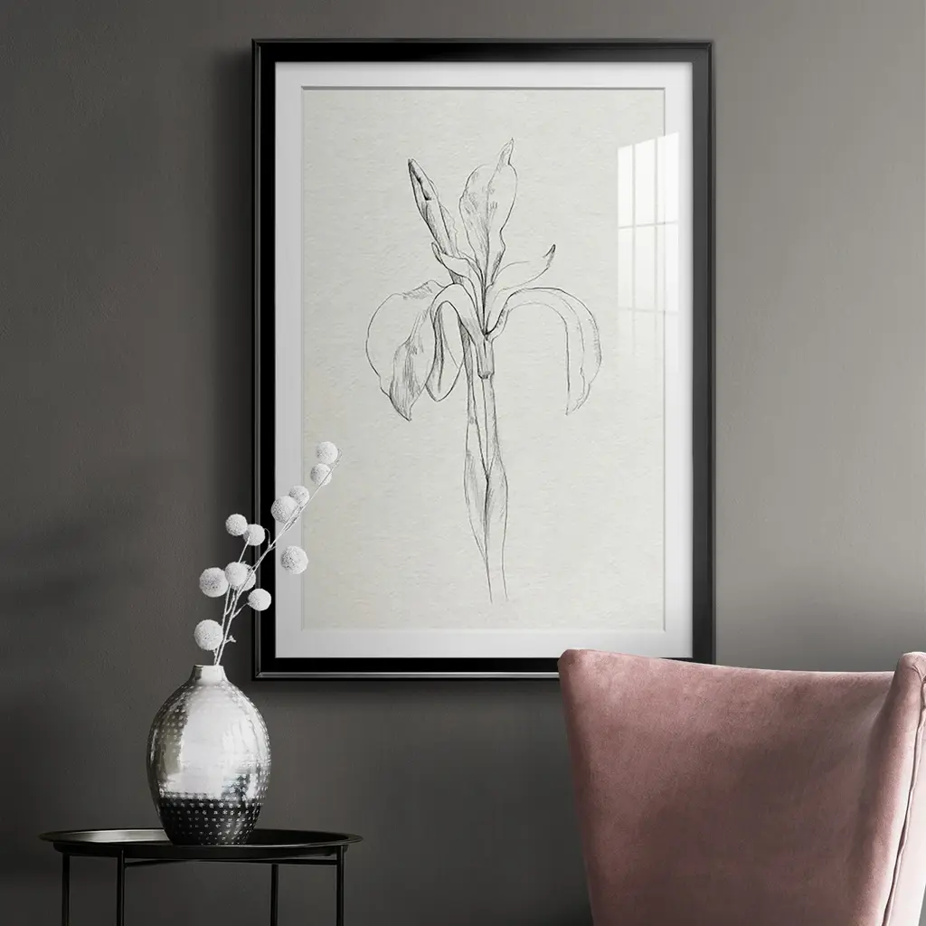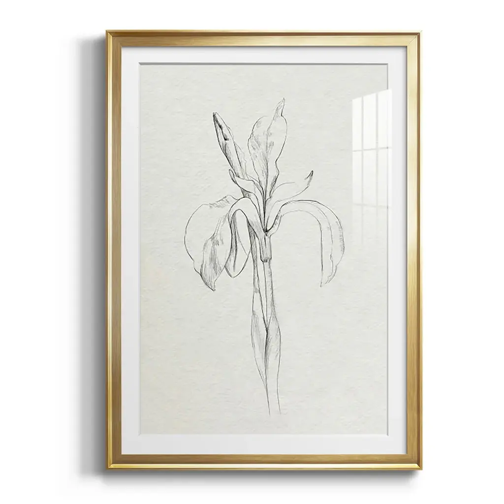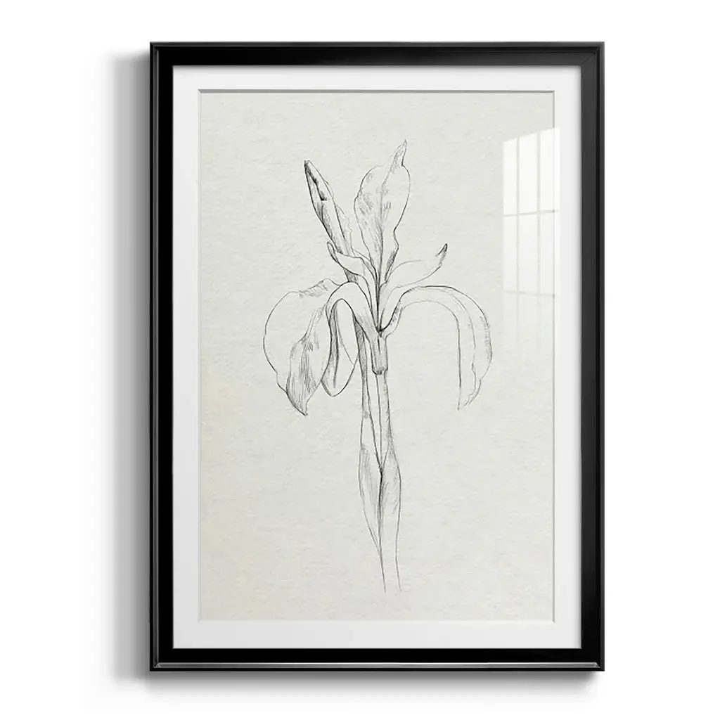 Neutral Iris Sketch II Premium Framed Print - Ready to Hang A Premium Framed Print created to last. Framed in distressed wood and available in an array of sizes and colors Featuring a beveled a solid wood stretcher bar, each piece comes ready to hand 4 SIZES AVAILABLE 30.5''X42.5'' - Overall Size 26.5'X36.5'' - Overall Size 22.5''x30.5'' - Overall Size 18.5''x24.5'' - Overall Size Each piece is made to order. Each piece comes with hanging hardware. Made in the USA Ready to Hang Giclee Paper Print Acrylic Glass Beveled Matt Board