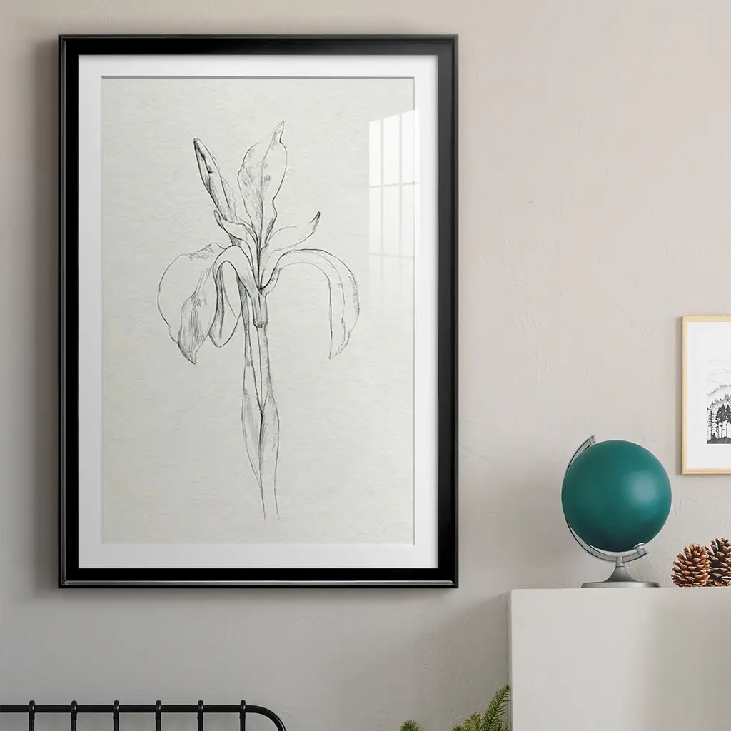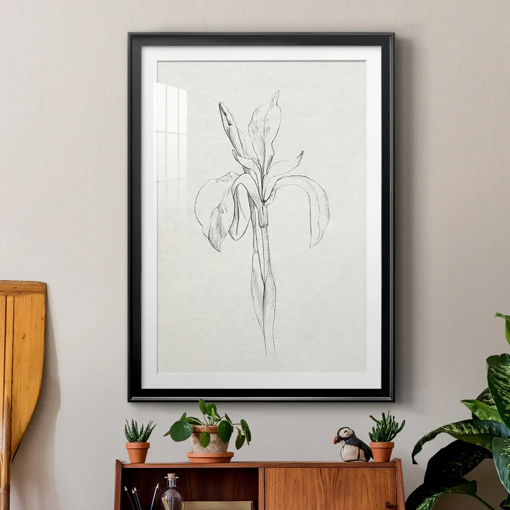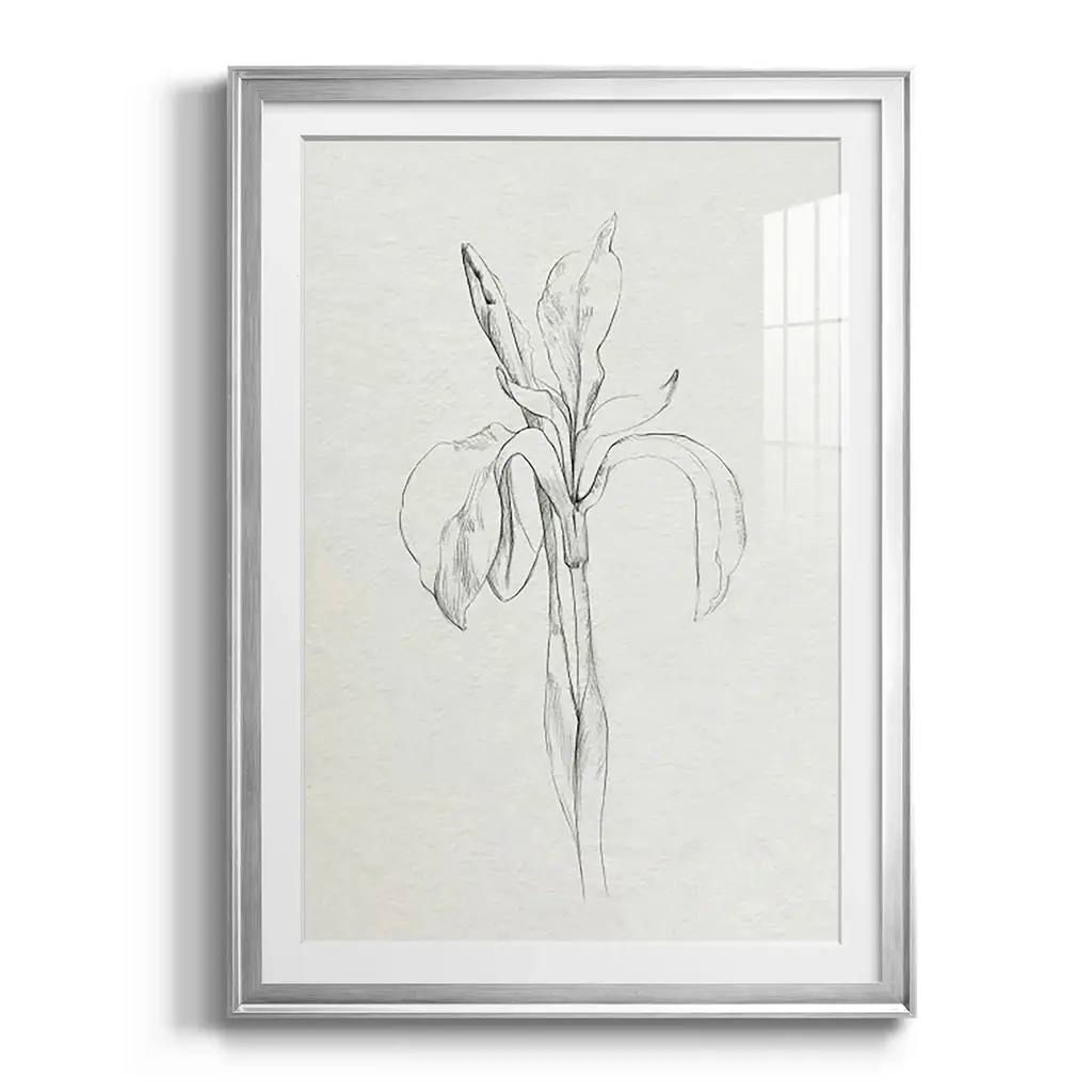Neutral Iris Sketch II Premium Framed Print - Ready to Hang A Premium Framed Print created to last. Framed in distressed wood and available in an array of sizes and colors Featuring a beveled a solid wood stretcher bar, each piece comes ready to hand 4 SIZES AVAILABLE 30.5''X42.5'' - Overall Size 26.5'X36.5'' - Overall Size 22.5''x30.5'' - Overall Size 18.5''x24.5'' - Overall Size Each piece is made to order. Each piece comes with hanging hardware. Made in the USA Ready to Hang Giclee Paper Print Acrylic Glass Beveled Matt Board