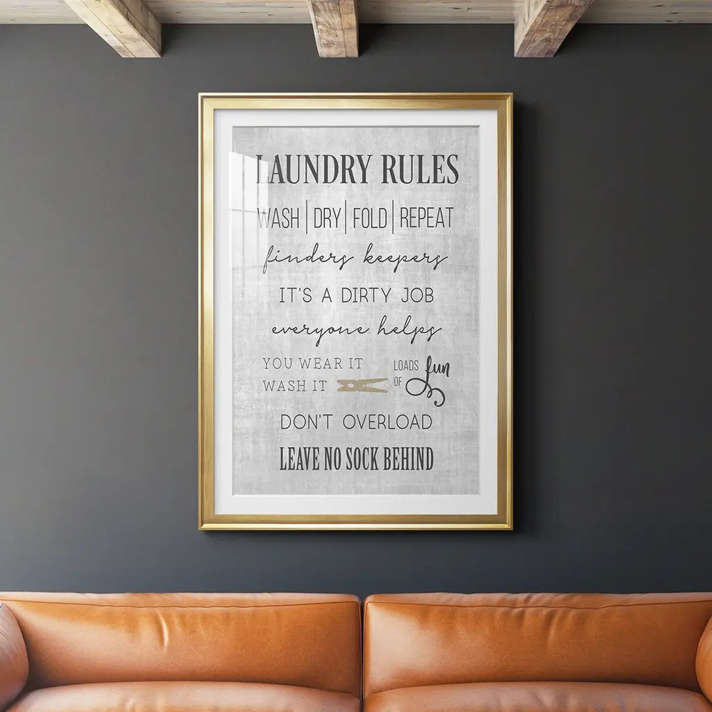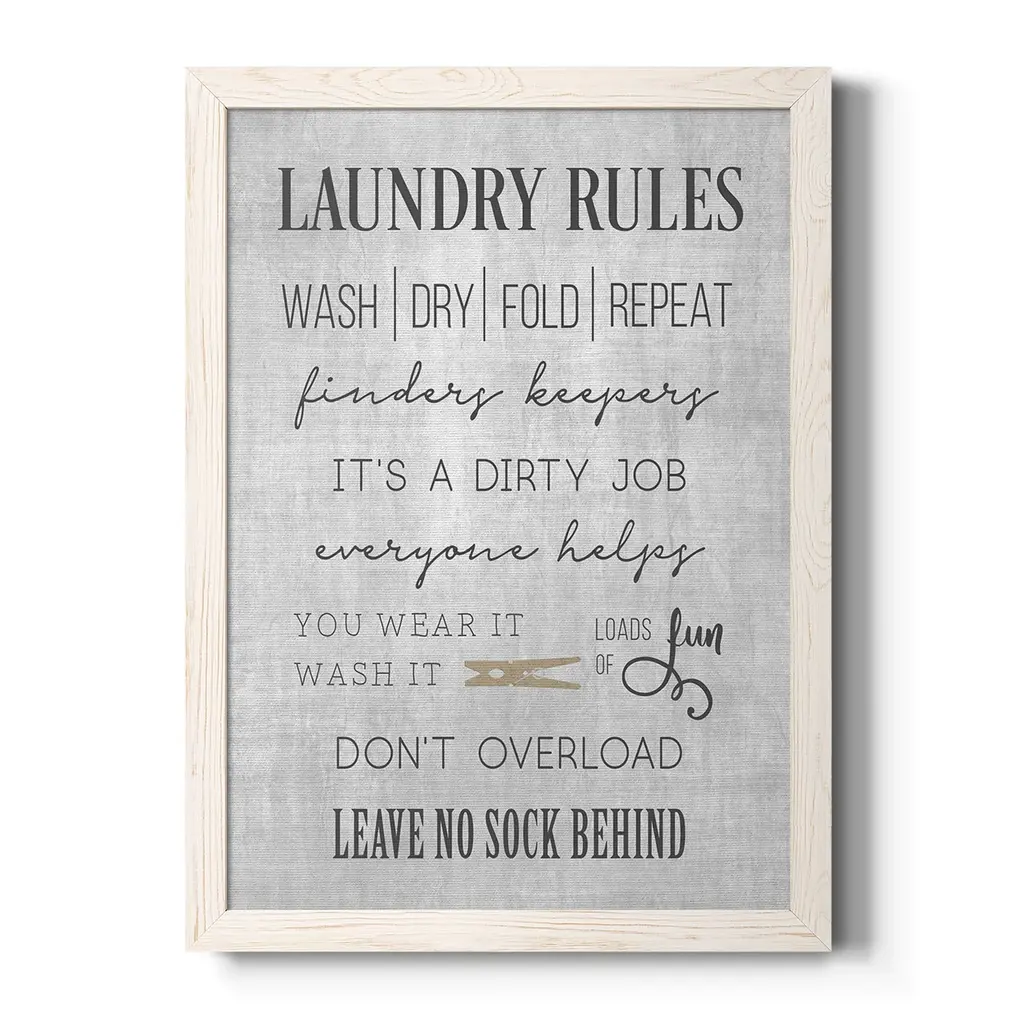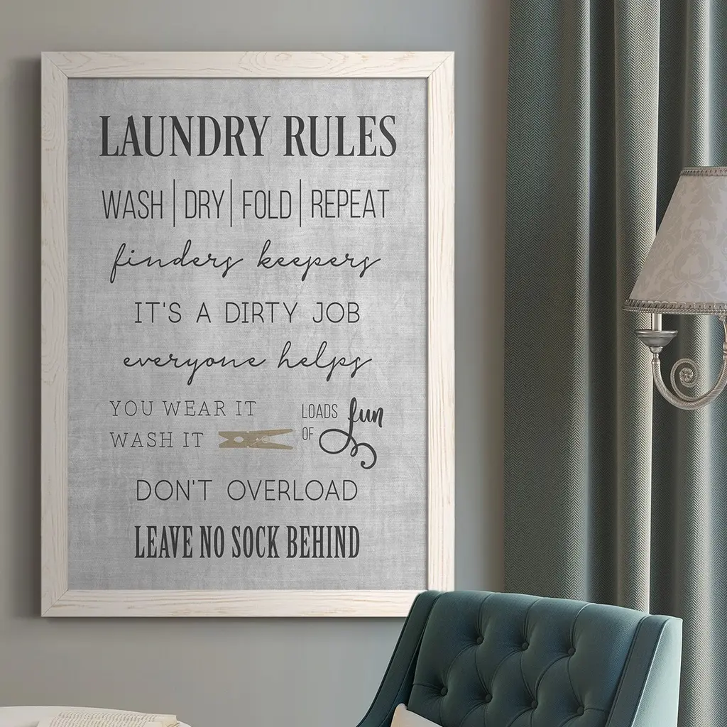 Neutral Laundry Rules-Premium Framed Canvas - Ready To Hang - 27.5x37.5 - Grey