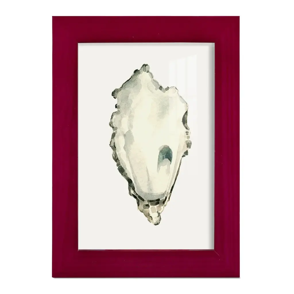 Neutral Oyster Study IV -EZ SWITCH Framed Print w/glass-Cherry Red A delightful, framed print. Featuring a solid wood frame with real wood glass. This premium print is giclee quality. In addition, every frame features a removable back and table top stand. This allows you to change your art in the future or to just stand the art on a table for a new look. We are sure you'll enjoy our new series of EZ SWITCH Framed Art. Solid Wood Frame Real Glass Removable / Replaceable Art Built in Tabletop Stand Sizes range from 4x6 up to 12x15 - buy just one or pair them up as sets as you see fit.