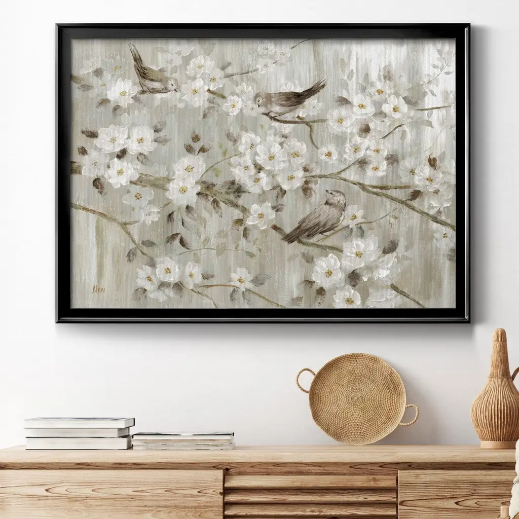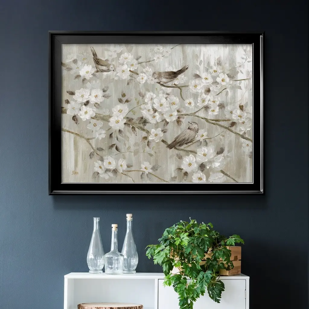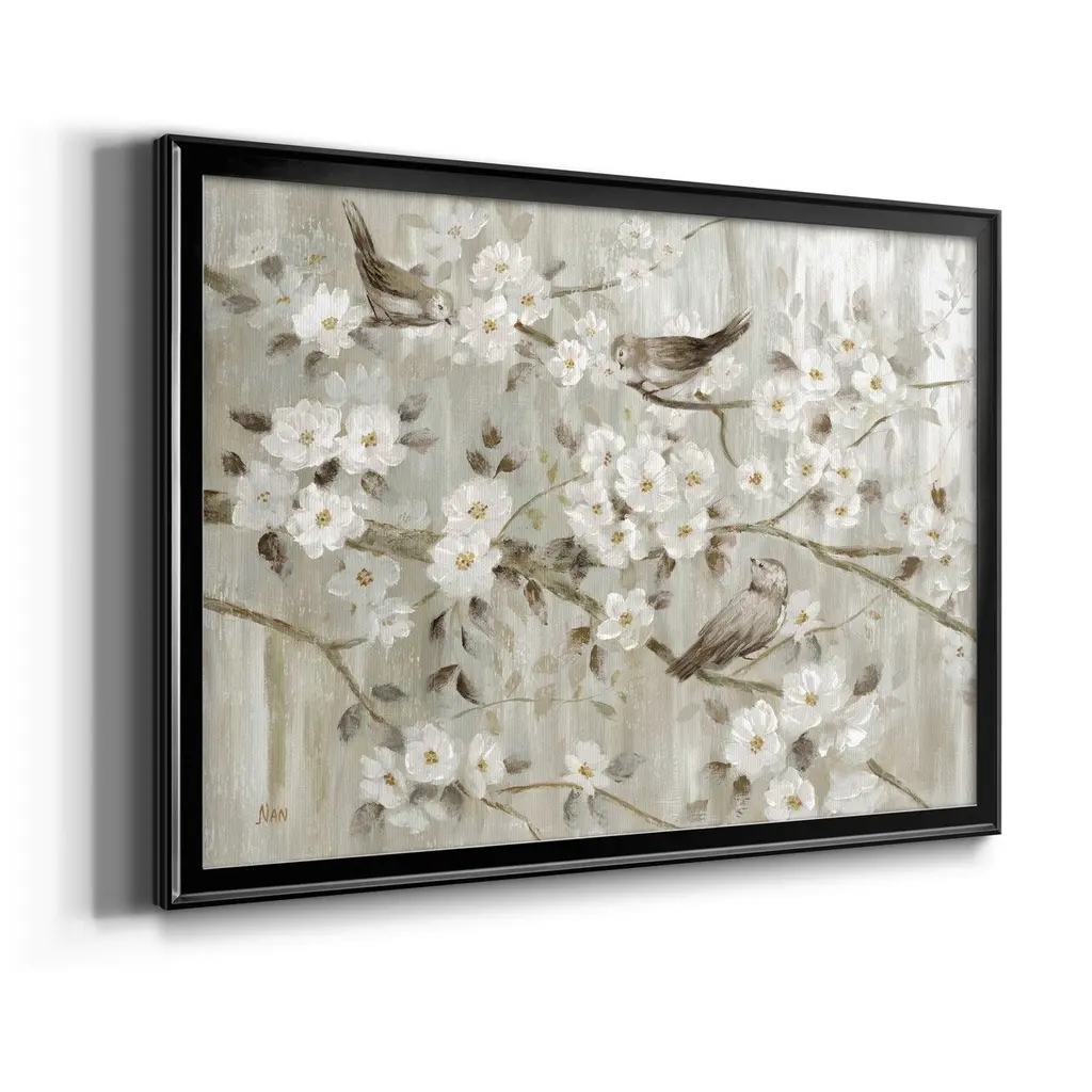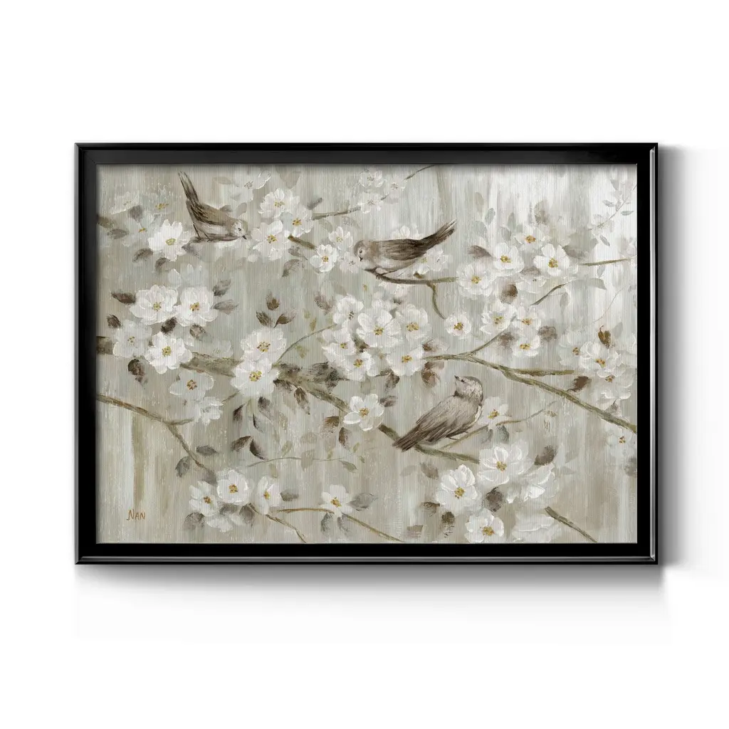 Neutral Spring Birds Premium Framed Canvas - Ready To Hang - 22.5x30.5 - Black