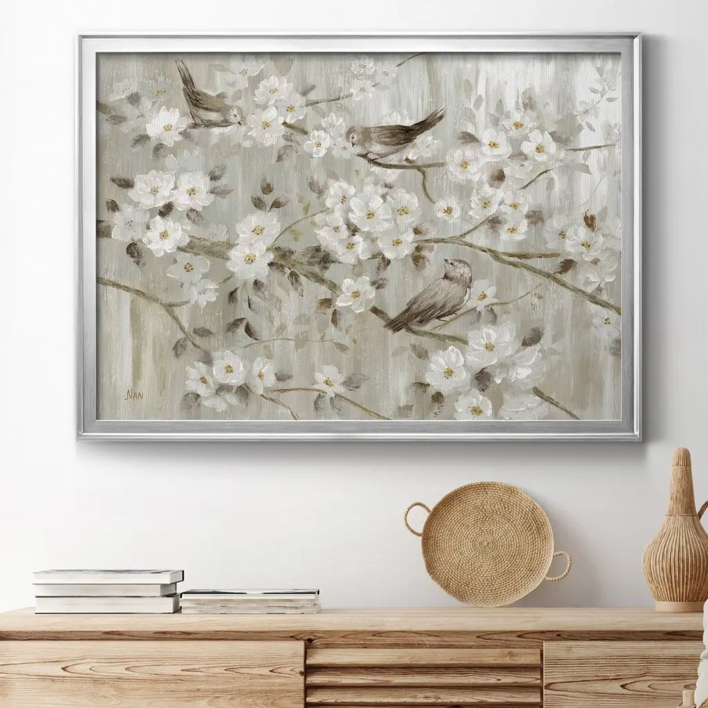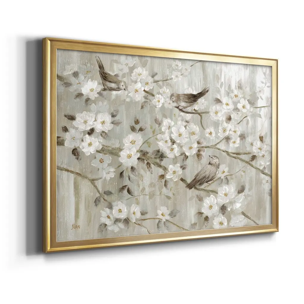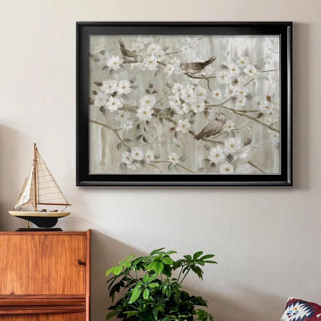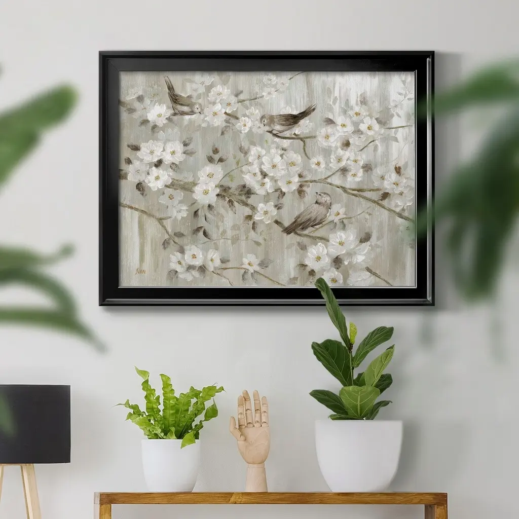 Neutral Spring Birds Premium Framed Canvas - Ready To Hang - 22.5x30.5 - Black