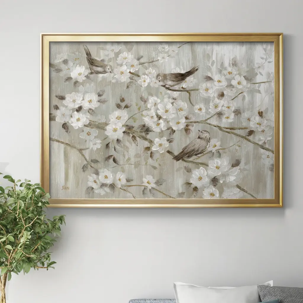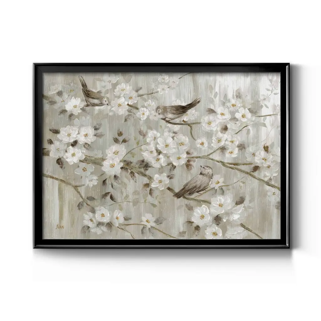 Neutral Spring Birds Premium Framed Canvas - Ready To Hang - 30.5x42.5 - Black
