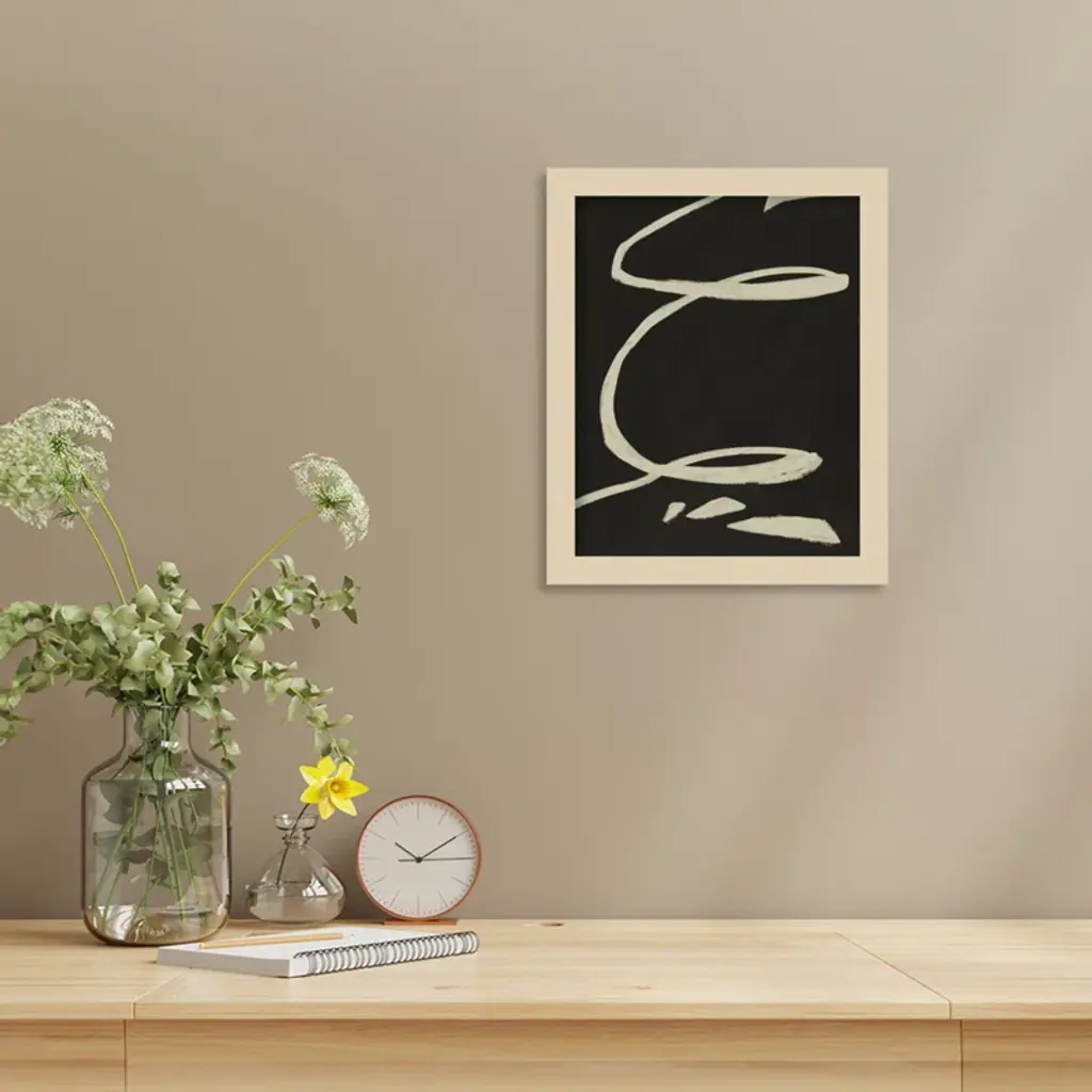 Art description: This abstract artwork captures the essence of spring with its whimsical flowing shapes. The composition invites viewers to interpret the piece freely, evoking a sense of renewal and energy. This framed art print was created by Jacob Green and printed in Madison, WI. The print is giclee printed using fade-resistant inks for picture-perfect detail and incredible depth of color and finished with a 100% real wood frame. Individually made using traditional custom framing techniques, it has the quality you would expect from your local frame shop. Features: Custom artwork details: "Neutral Spring III" by Jacob Green. 100% Real wood frame details: The art is framed in the Svelte frame which measures 1 in. wide and stands 1 in. off the wall. Quality and authenticity: Prints are giclee printed using fade-resistant inks for picture-perfect detail and incredible depth of color. They are protected with a shatterproof sheet of gallery-quality acrylic, which resists UV rays and light damage better than traditional glass. The artwork is authentically licensed. Protective backing: Premium paper prints are permanently adhered to a rigid backer board to prevent rippling over time. Hassle-free hanging: Ready to hang for easy installation. All framed prints have a durable hanging wire attached to the back and a hanging hook and nail. Assembled in the USA: Each piece is assembled to order in Madison, WI USA. For home or commercial use: Because of our attention to detail and focus on artistry, architects, interior designers, and homeowners alike choose this framed art print to create beautiful living spaces.
