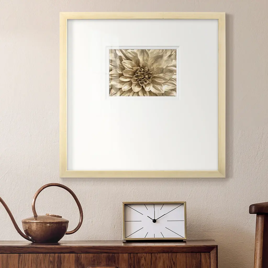 Neutral Wall Flower IPremium Framed Print A framed cold pressed paper print featuring superior double matting and quality frame. 2 SIZES AVAILABLE 16''X16''' - Overall Size 20''X20''' - Overall Size Each piece is made to order. Each piece comes with hanging hardware. Made in the USA Ready to Hang Giclee Paper Print Plexiglass Beveled Matt Board Double Matte Board