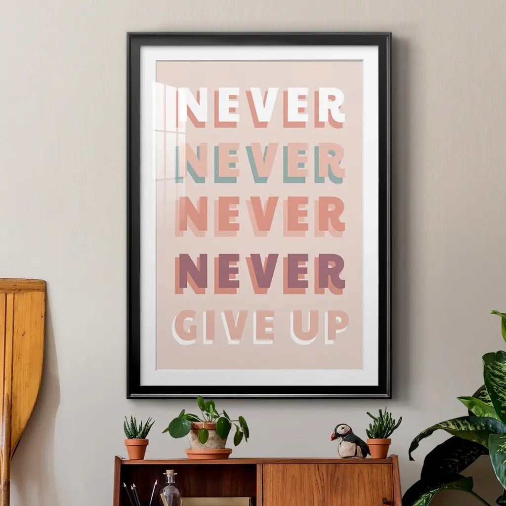 Never Give Up Premium Framed Print - Ready To Hang - 22.5x30.5 - Silver