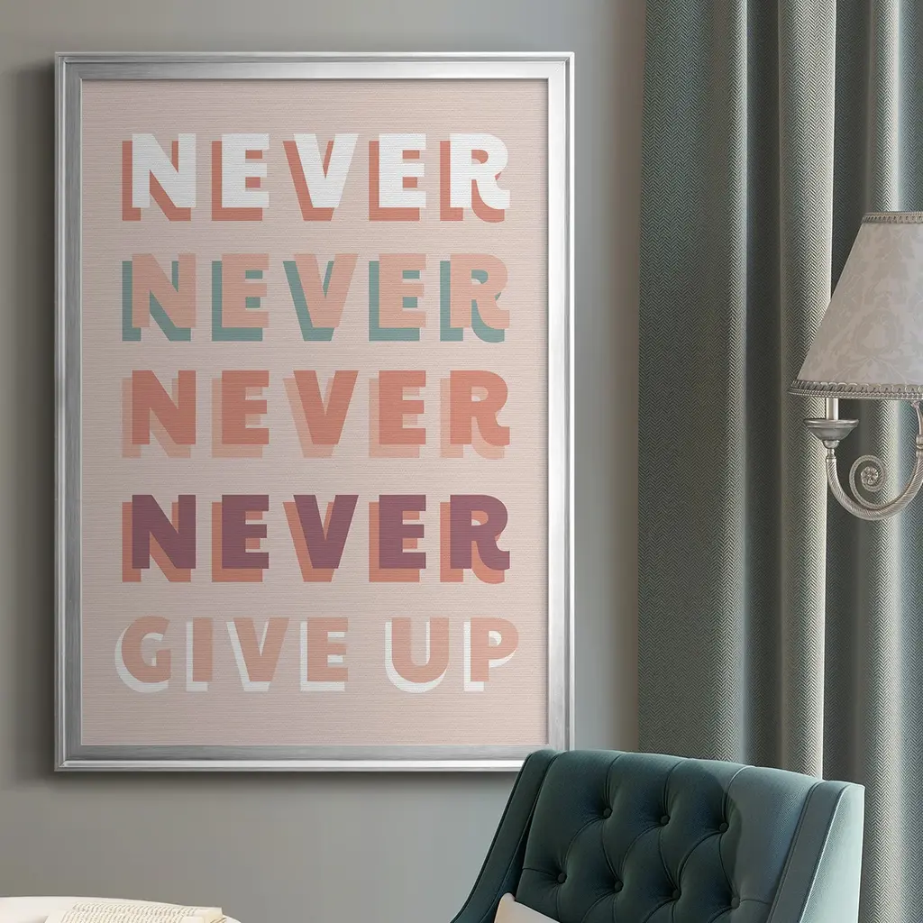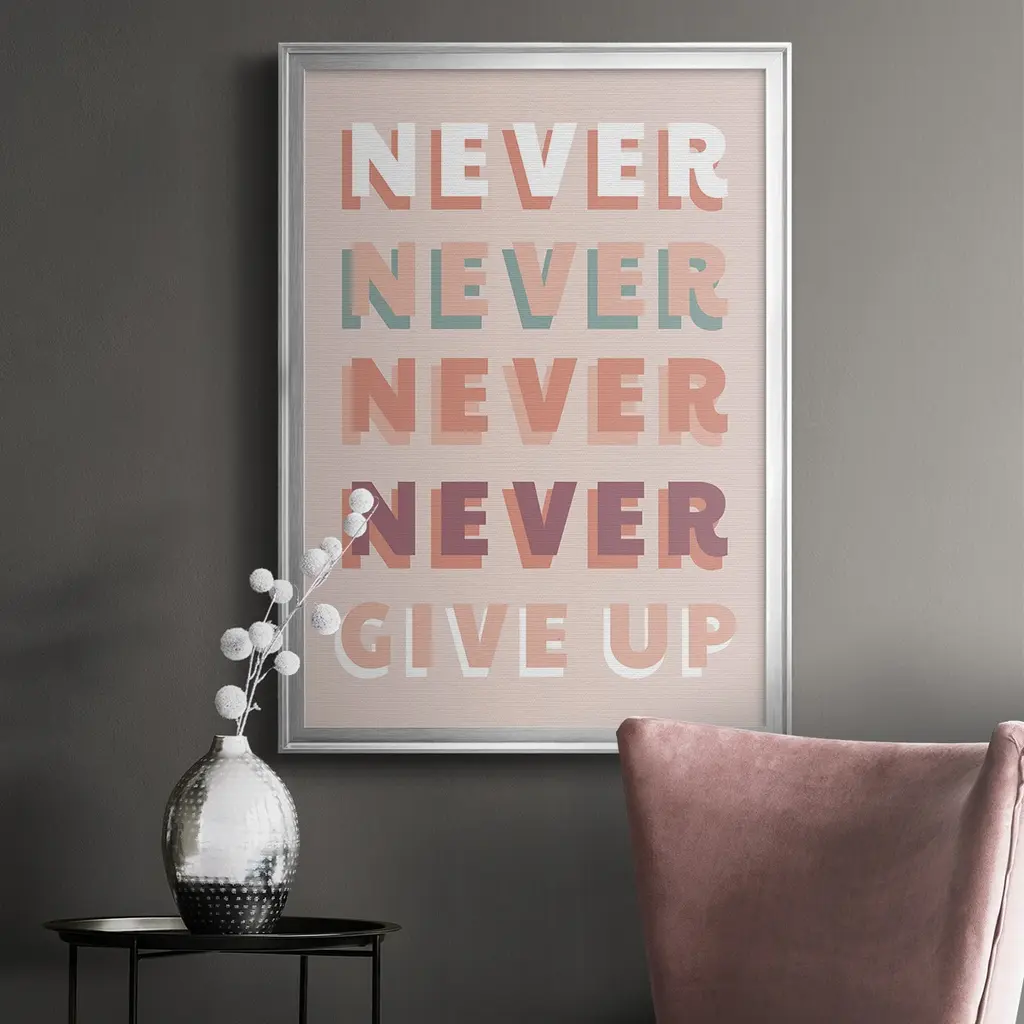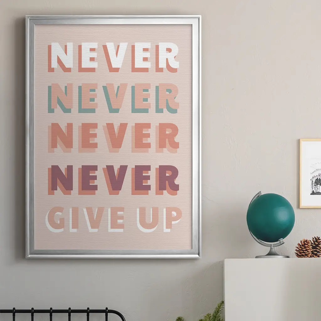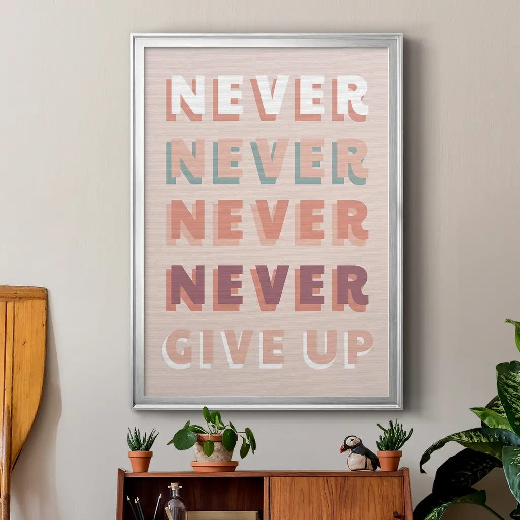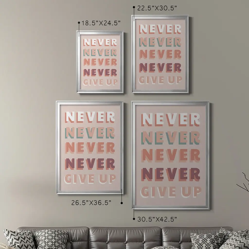 Never Give Up Premium Framed Print - Ready To Hang - 26.5x36.5 - Silver