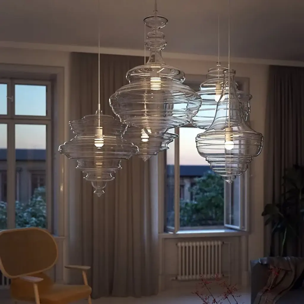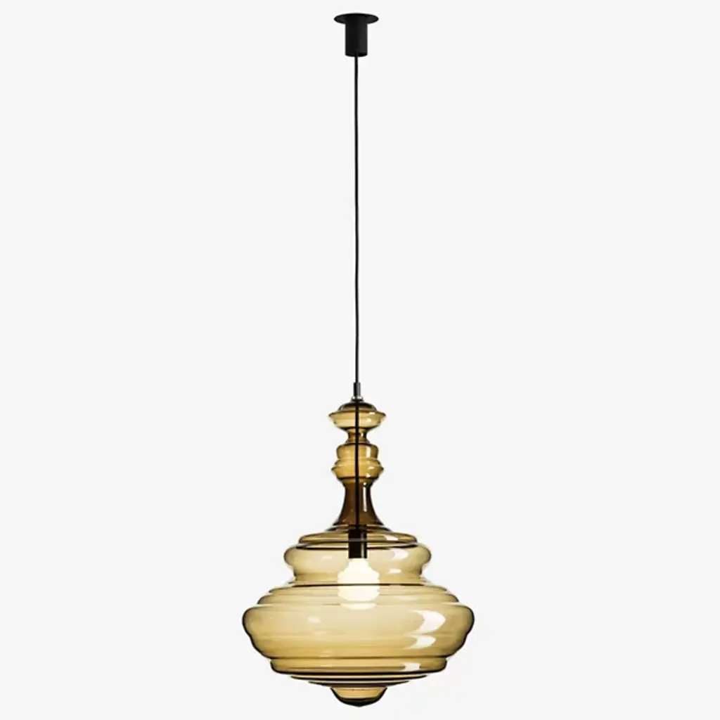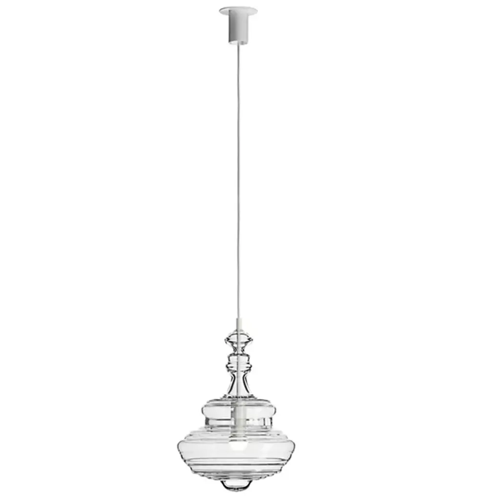 Referencing the iconic chandeliers in Moscow’s Bolshoi Theater, the Neverending Glory Bolshoi Theatre Pendant from Lasvit leaves an impression in the full 360-degrees with light-glazed stages of glass. Just like an opera or play, emotion proves central in designer Jan Plechác & Henry Wielgus’s work. The design duo conjures these emotions with a minimal aesthetic. While minimal in materials choice, the construction of this layered glass piece is as complex as they come. Glass artists translate the design duo’s sketched shape into a curve-draped shade evocative of classic chandeliers. Every level of glass catches streaking highlights as an atmospheric glow mellows through it.