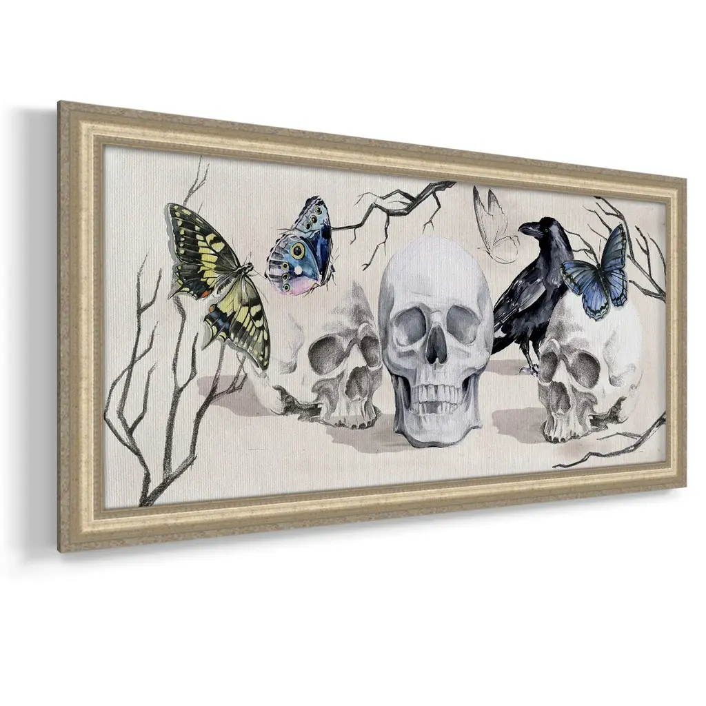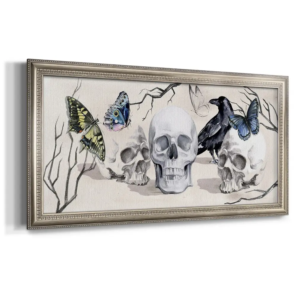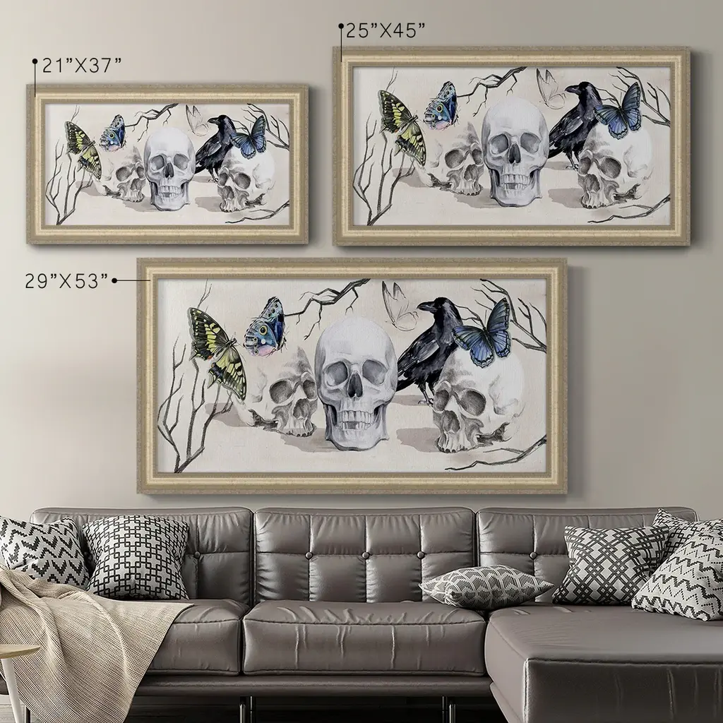 Nevermore Collection D Premium Framed Canvas- Ready to Hang A Premium Framed Canvas created to last. Framed in distressed wood and available in an array of sizes and colors Featuring a beveled a solid wood stretcher bar, each piece comes ready to hand 3 SIZES AVAILABLE 21''X37'' - Overall Size 25''X45'' - Overall Size 29''x53'' - Overall Size Each piece is made to order. Each piece comes with hanging hardware. Made in the USA Ready to Hang Giclee Paper Print Acrylic Glass Beveled Matt Board