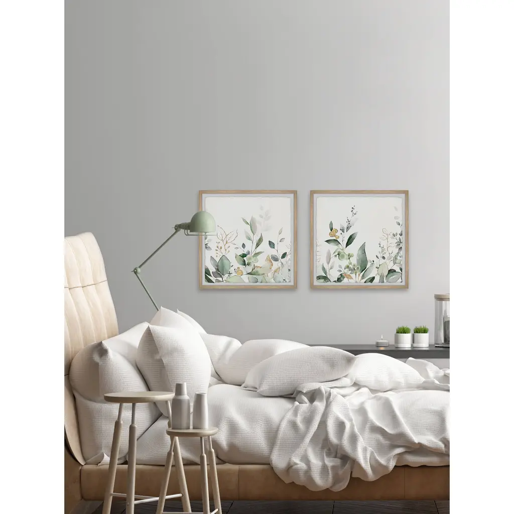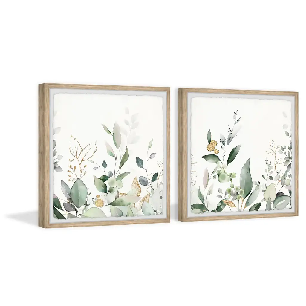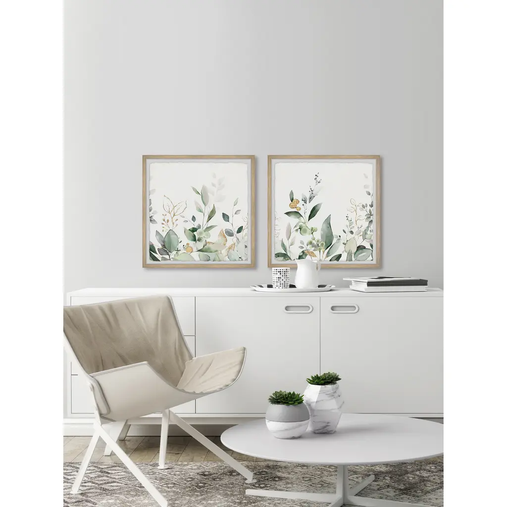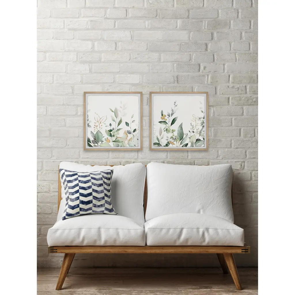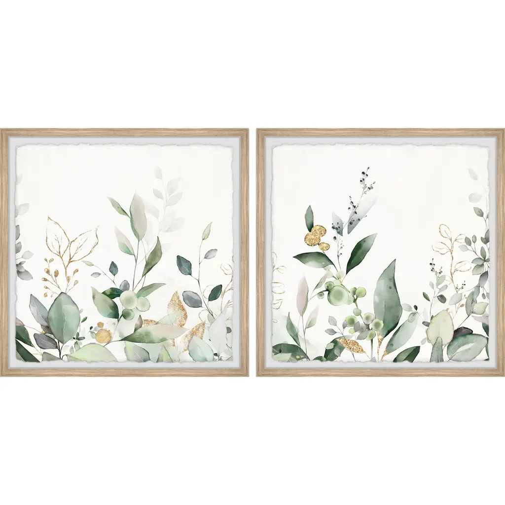 Create a museum-quality gallery with this duo of watercolor painting prints that features various green botanicals. Proudly printed in the USA, this piece is printed on high quality archive paper and professionally hand-framed. With wall-mounting hooks included, this artful accent is ready to hang up as soon as it reaches your front door. • Top quality Giclee print on high resolution Archive Paper • Hand cut deckled edges • High quality durable non-warping frame • Finished under shatter resistant plexiglass • Arrives ready to hang • Includes a certificate of authenticity • Printed in the USA