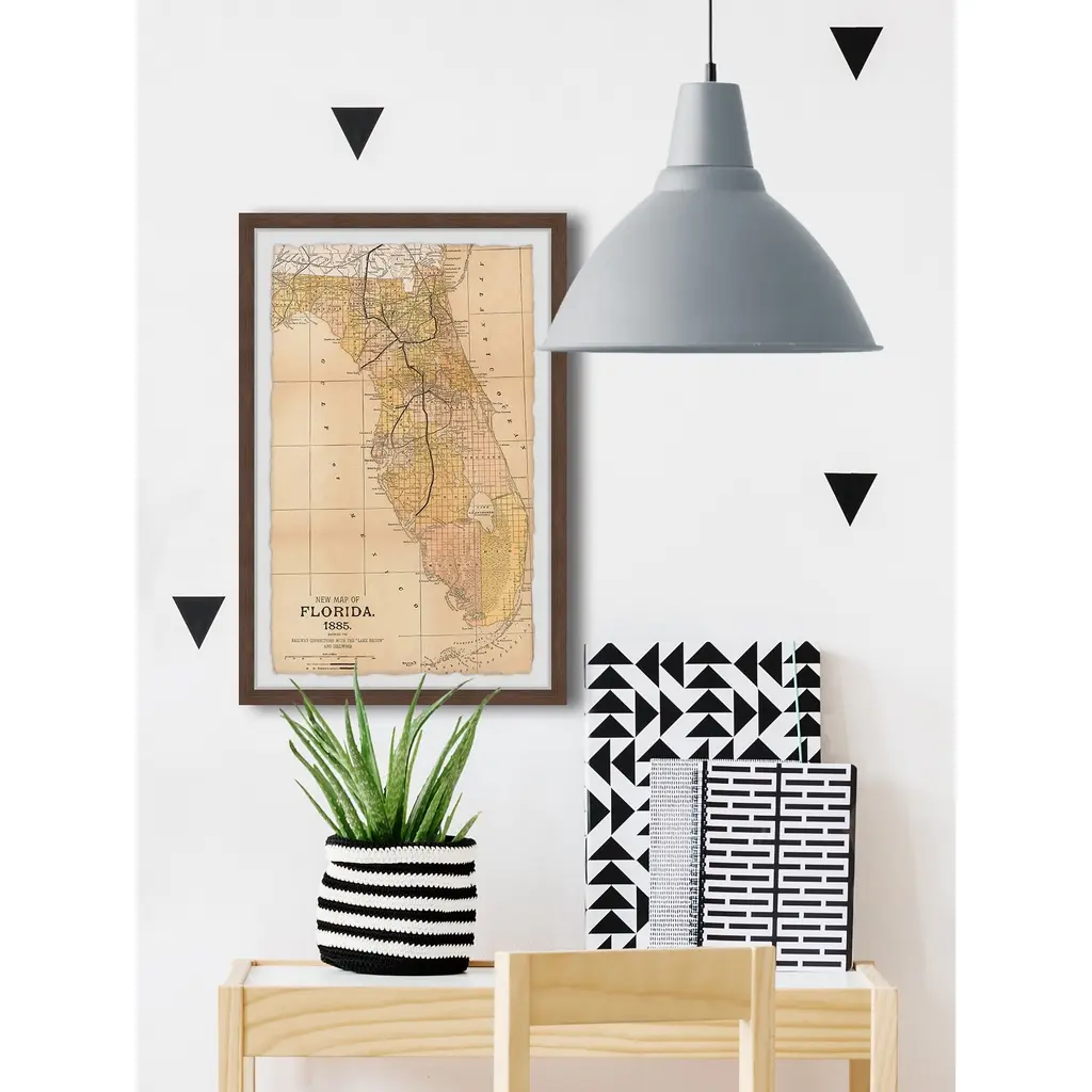 This yellow and beige map features the state of Florida alongside the coastline for an eye-catching display of America's fascinating geography in 1885. This piece is printed on high quality archive paper and professionally hand-framed. With wall-mounting hooks included, this artful accent is ready to hang up as soon as it reaches your front door. • Top quality Giclee print on high resolution Archive Paper • Hand cut deckled edges • High quality durable non-warping frame • Finished under shatter resistant plexiglass • Arrives ready to hang • Includes a certificate of authenticity • Printed in the USA