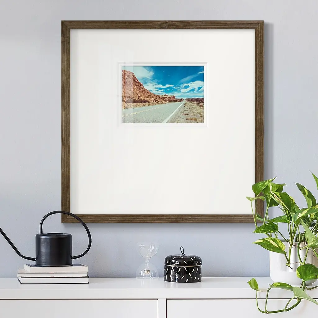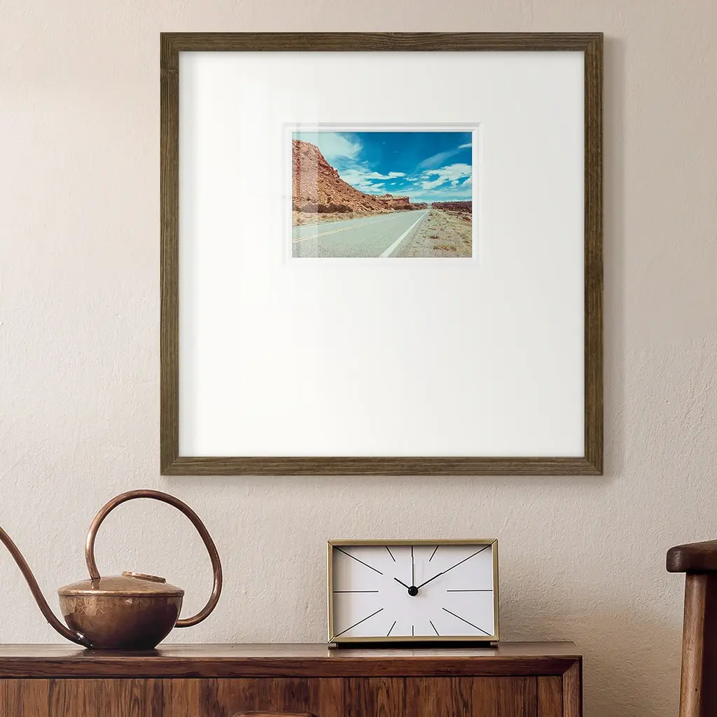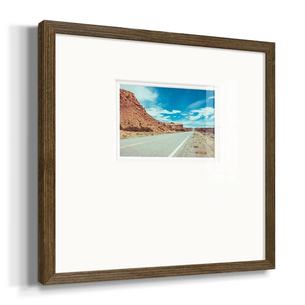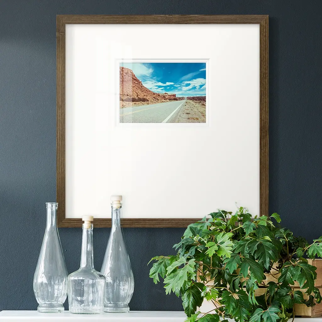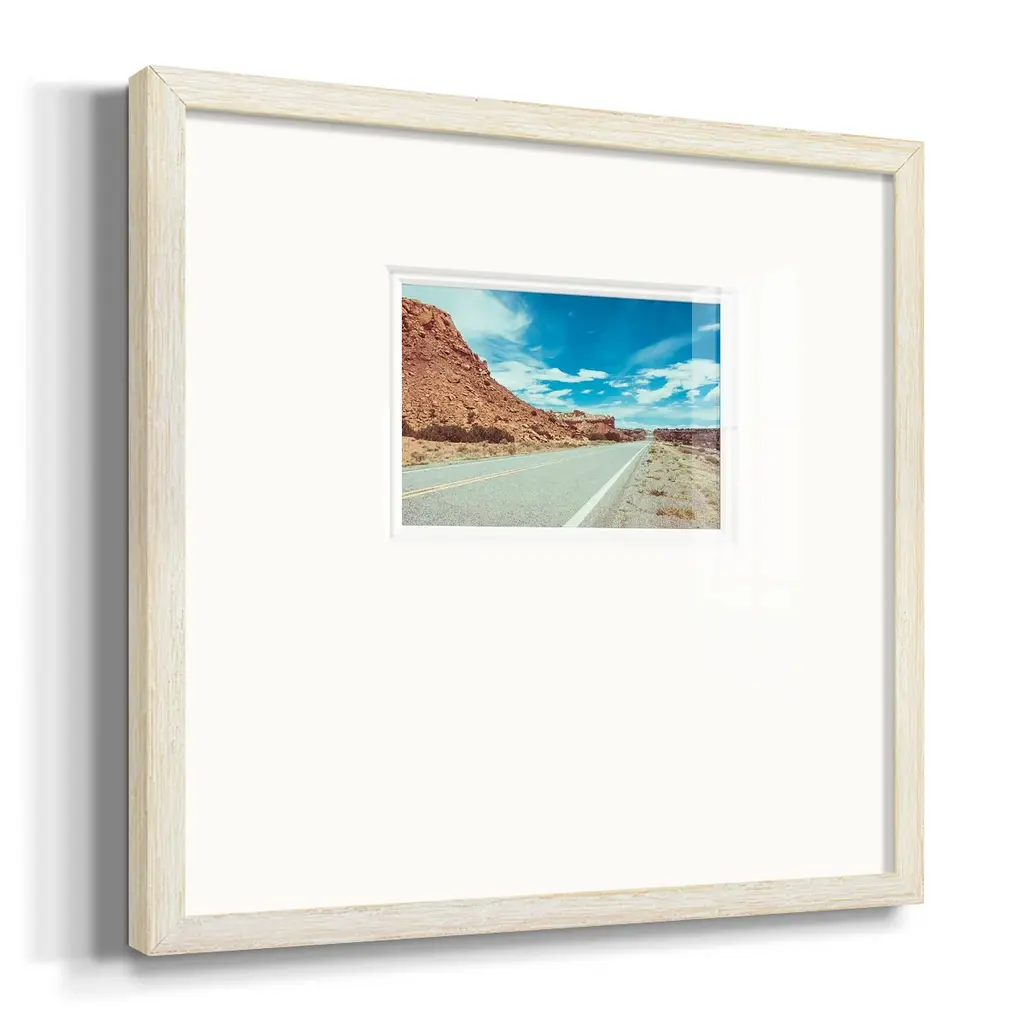 New Mexico Drive IIPremium Framed Print A framed cold pressed paper print featuring superior double matting and quality frame. 2 SIZES AVAILABLE 16''X16''' - Overall Size 20''X20''' - Overall Size Each piece is made to order. Each piece comes with hanging hardware. Made in the USA Ready to Hang Giclee Paper Print Plexiglass Beveled Matt Board Double Matte Board