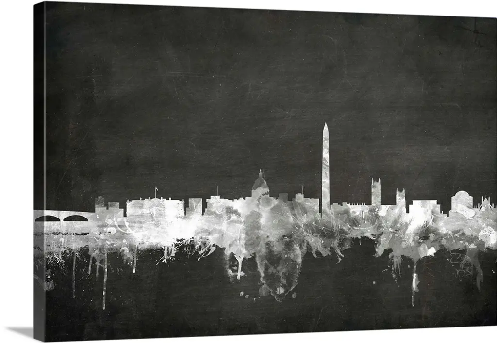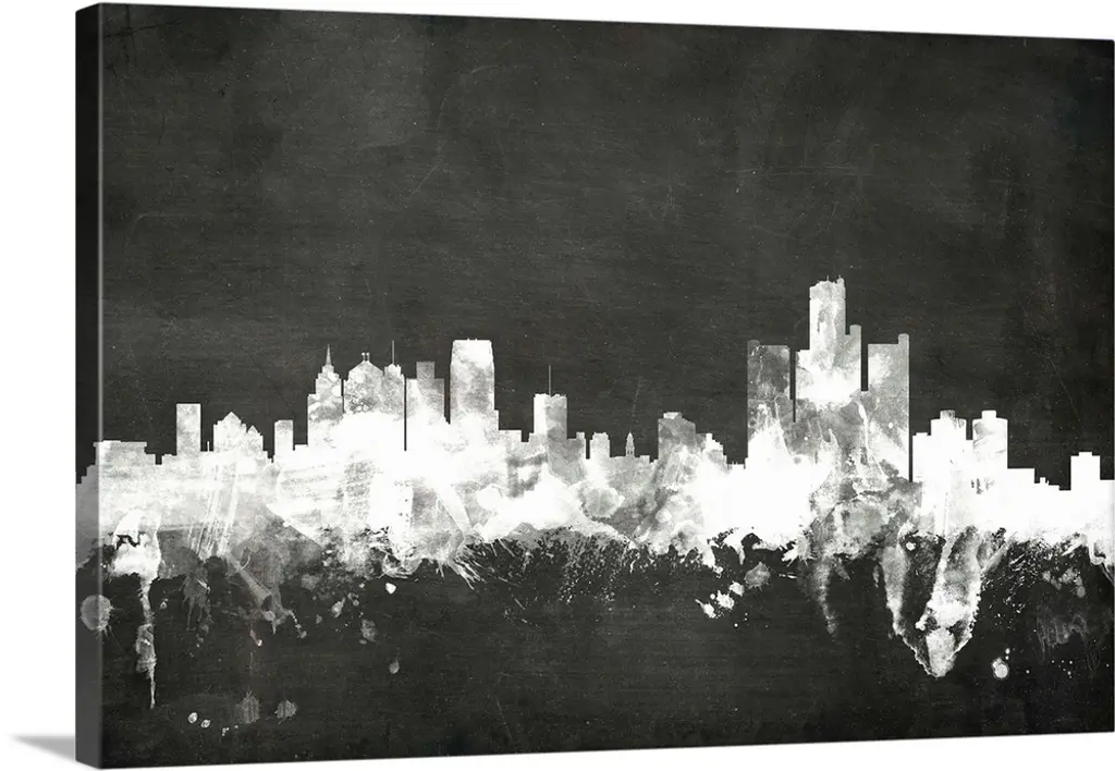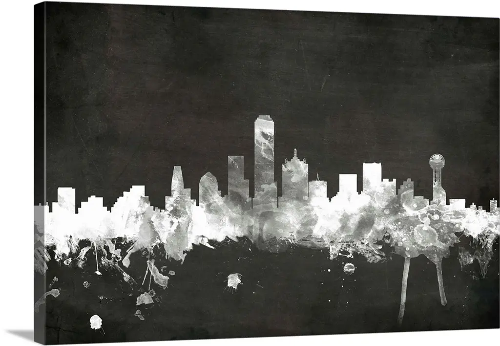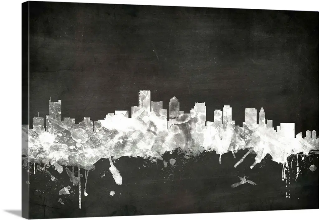Contemporary watercolor artwork of the New Orleans city skyline, in silhouette.