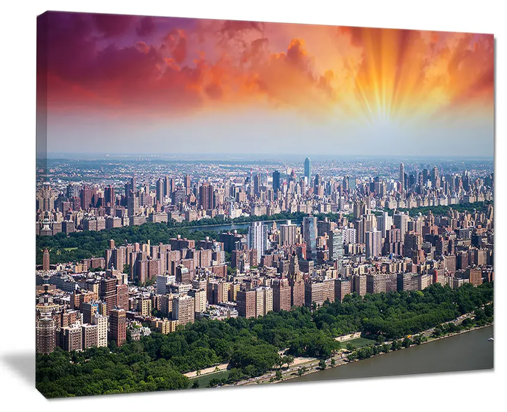The New York Beautiful Manhattan Skyline canvas art print is sure to make an impression on anyone who sees it. This artwork is gallery wrapped around a 1-inch solid wood frame and arrives carefully packaged and entirely ready to hang on the wall. Design Art only uses the highest resolution and pigments to ensure a crisp colorful print that is never faded or pixelated. This artwork is sure to be a conversation starter in any home or office.