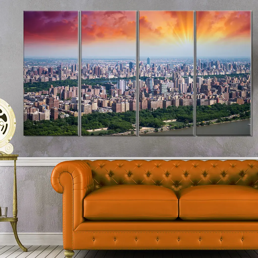 "New York Beautiful Manhattan Skyline" Canvas Print48"x28", 4-Panels