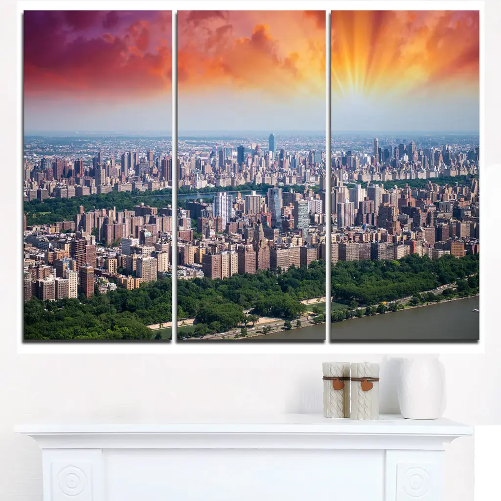 "New York Beautiful Manhattan Skyline" Metal Wall Art, 3 Panels, 36"x28"