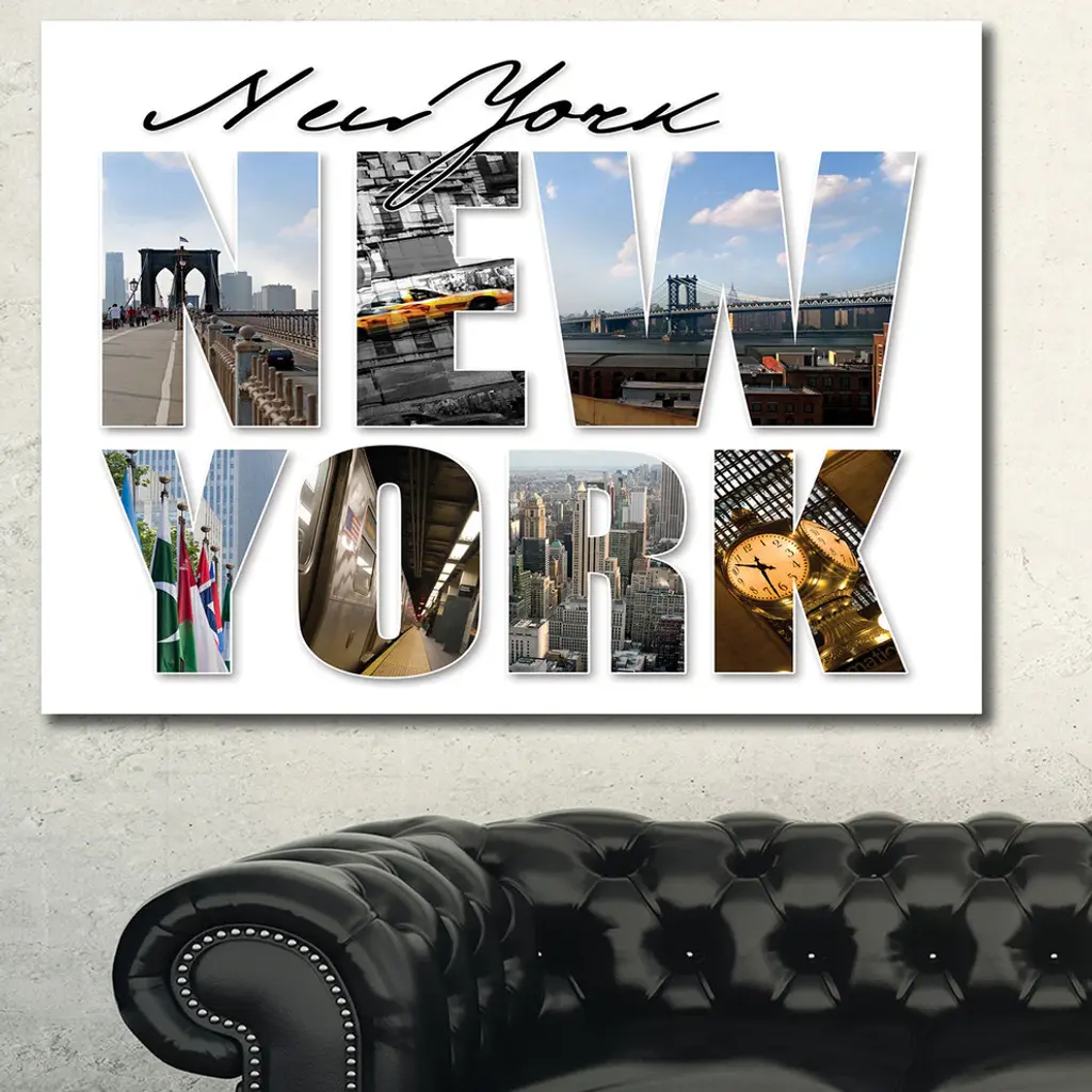 New York City Graphic Montage, Large Cityscape Canvas Art Print, 60x40