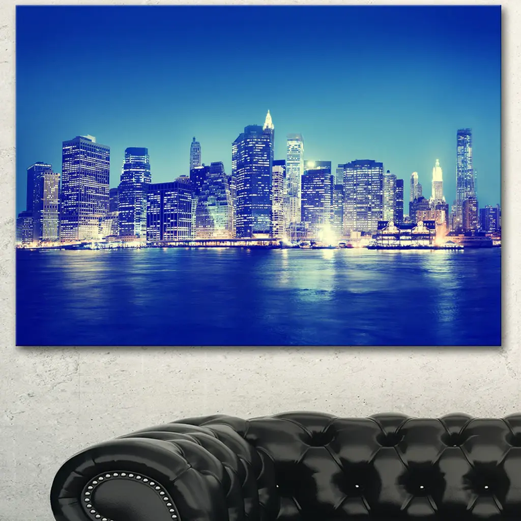 New York City Night Panorama, Extra Large Canvas Art Print, 60"x28"