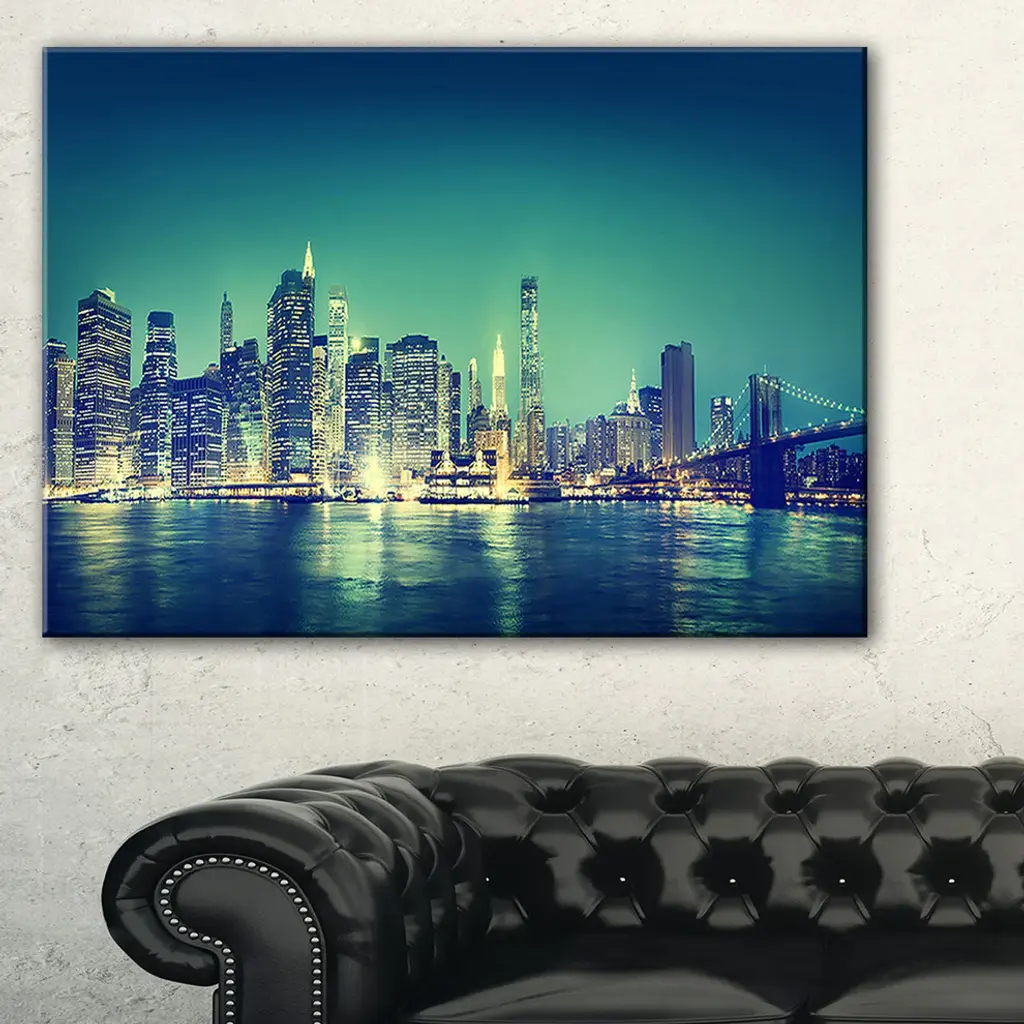 "New York City" Panorama Night Concept Cityscape Canvas Print60"x28", 1 Panel