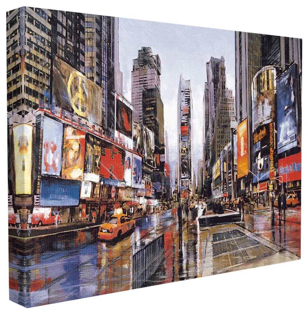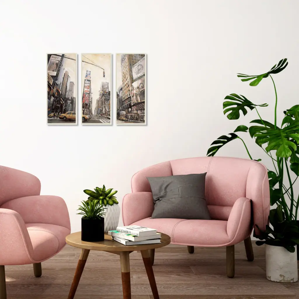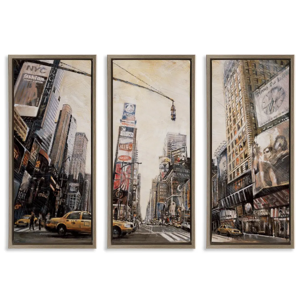 New York City Streets Buildings Cityscape Paintings 3-Piece Set, 7"x17"