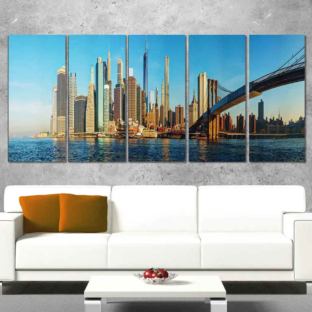 "New York City With Brooklyn Bridge" Canvas Print60"x28", 5-Panels