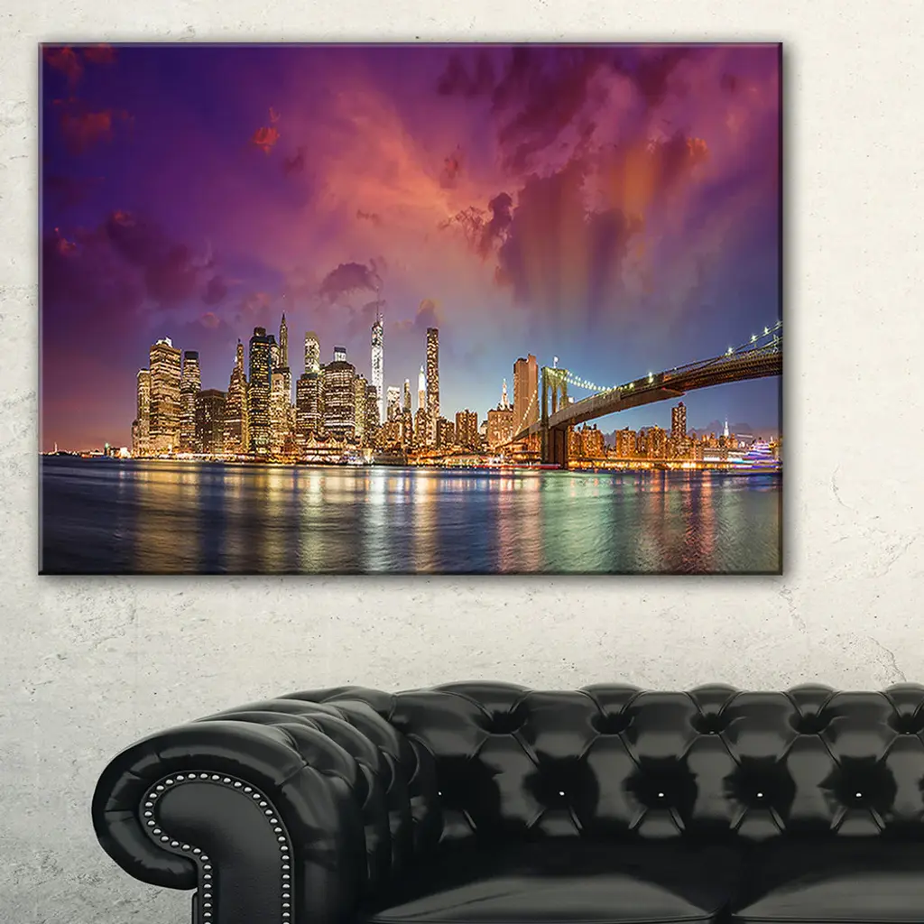 The New York Manhattan Skyline with Clouds canvas art print is sure to make an impression on anyone who sees it. This artwork is gallery wrapped around a 1-inch solid wood frame and arrives carefully packaged and entirely ready to hang on the wall. Design Art only uses the highest resolution and pigments to ensure a crisp colorful print that is never faded or pixelated. This artwork is sure to be a conversation starter in any home or office.