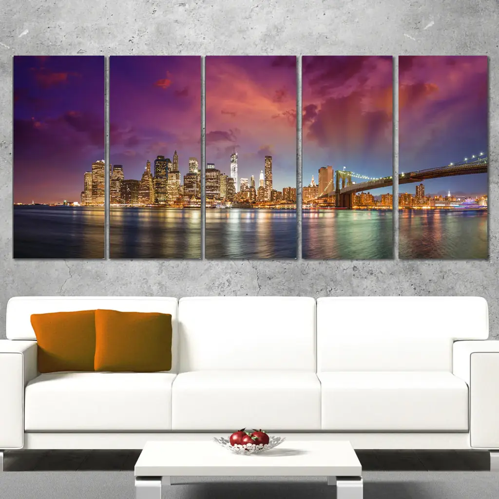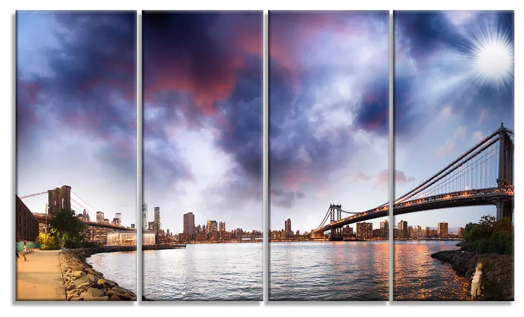 "New York Manhattan Skyline With Clouds" Wall Art, 60"x28", 5-Panels