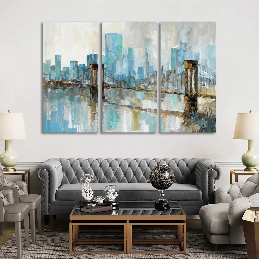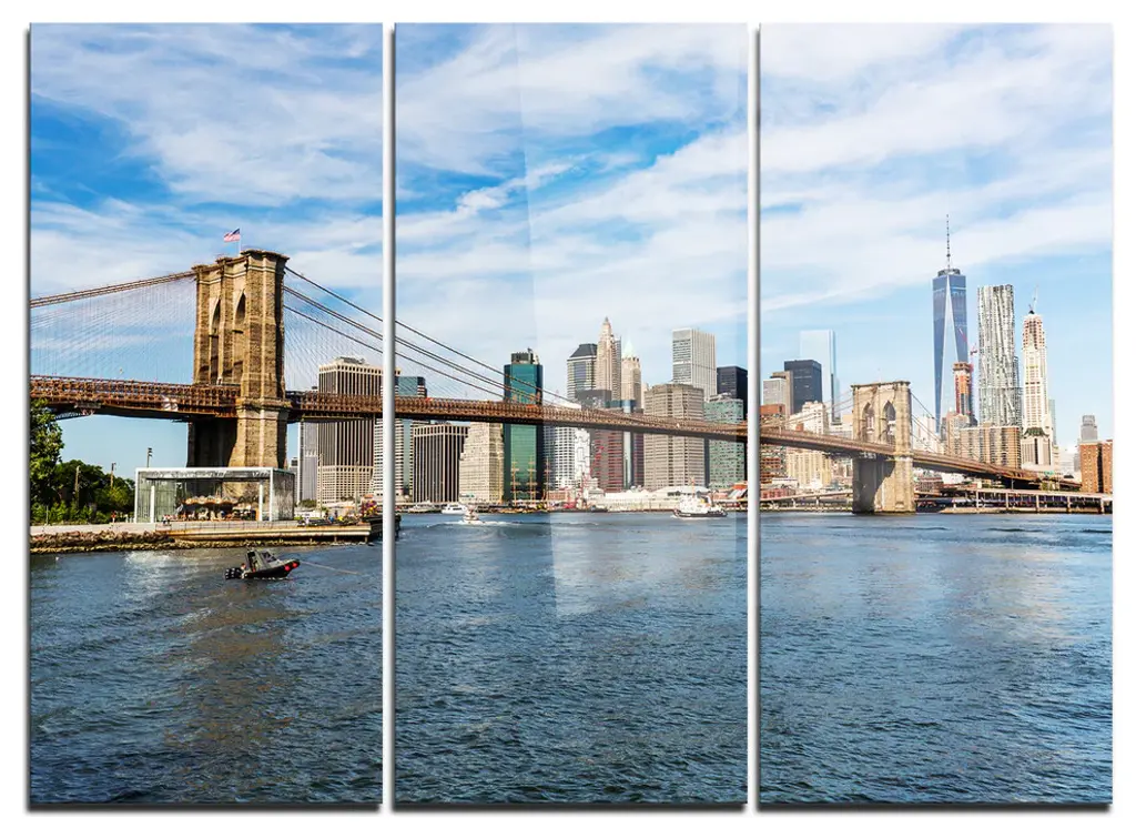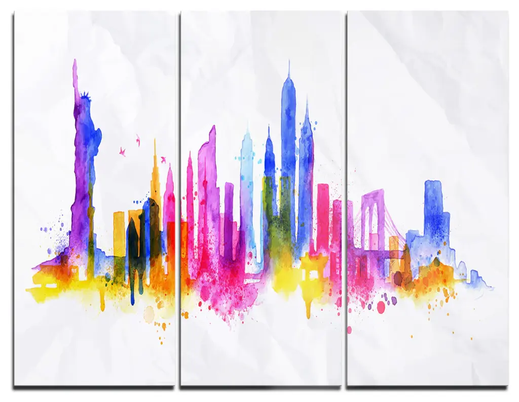 "New York Panoramic View" Watercolor Metal Wall Art, 3 Panels, 36"x28"