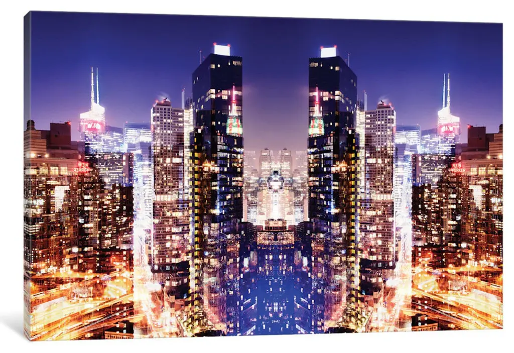 "New York Reflection Skyline At Night" By Philippe Hugonnard, 18x12x1.5