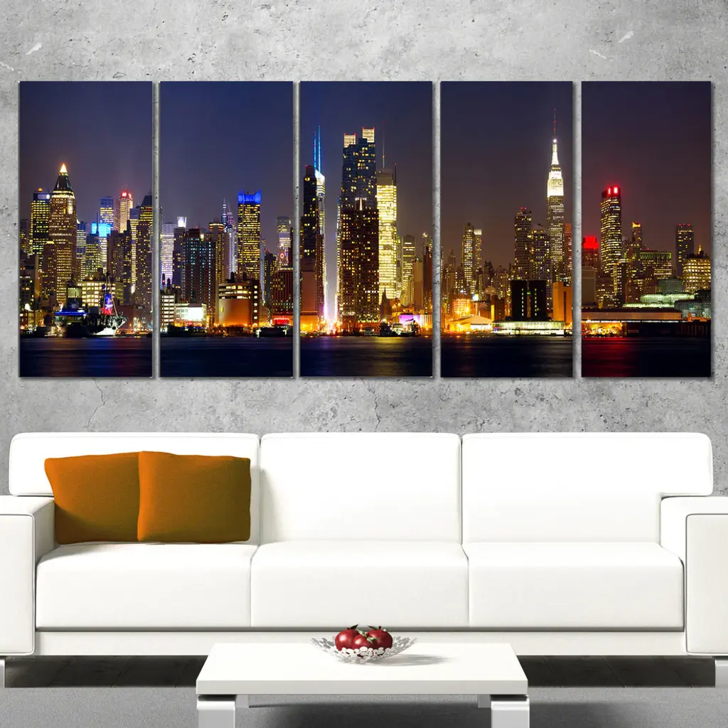 "New York Skyline At Night" Canvas Print, 5 Panels