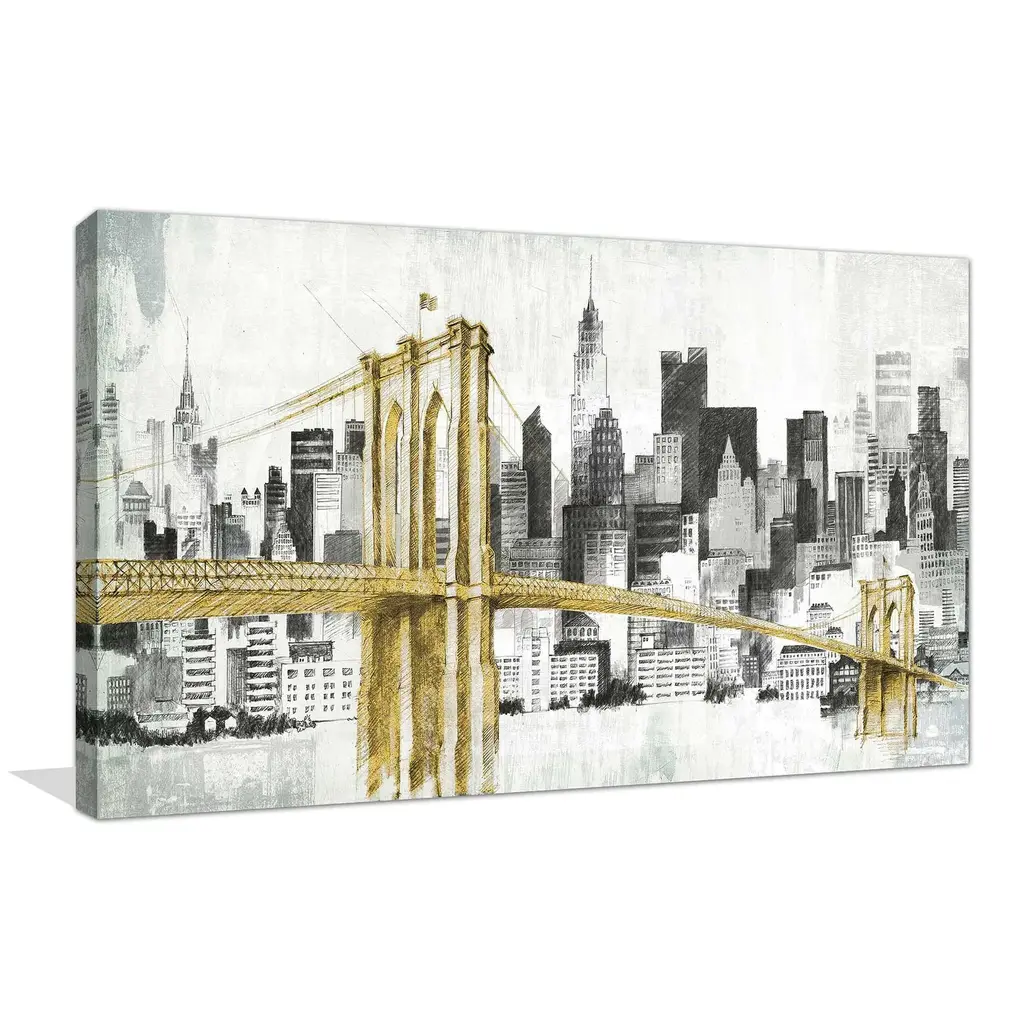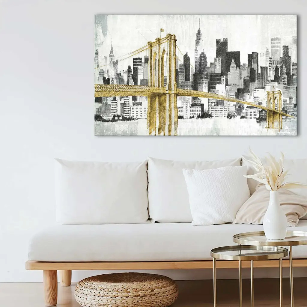 "New York Skyline I Yellow Bridge" Print On Canvas - 18 X 30