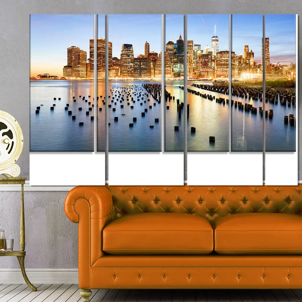 "New York Skyline With Skyscrapers" Canvas Print48"x28", 4-Panels