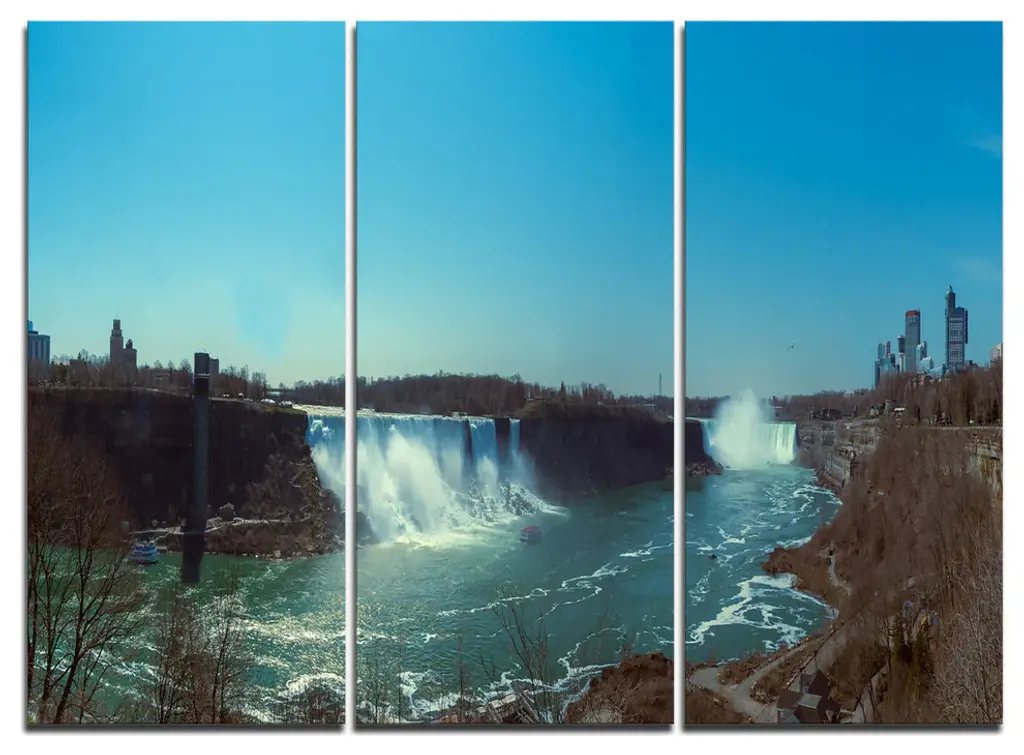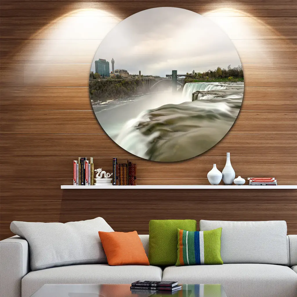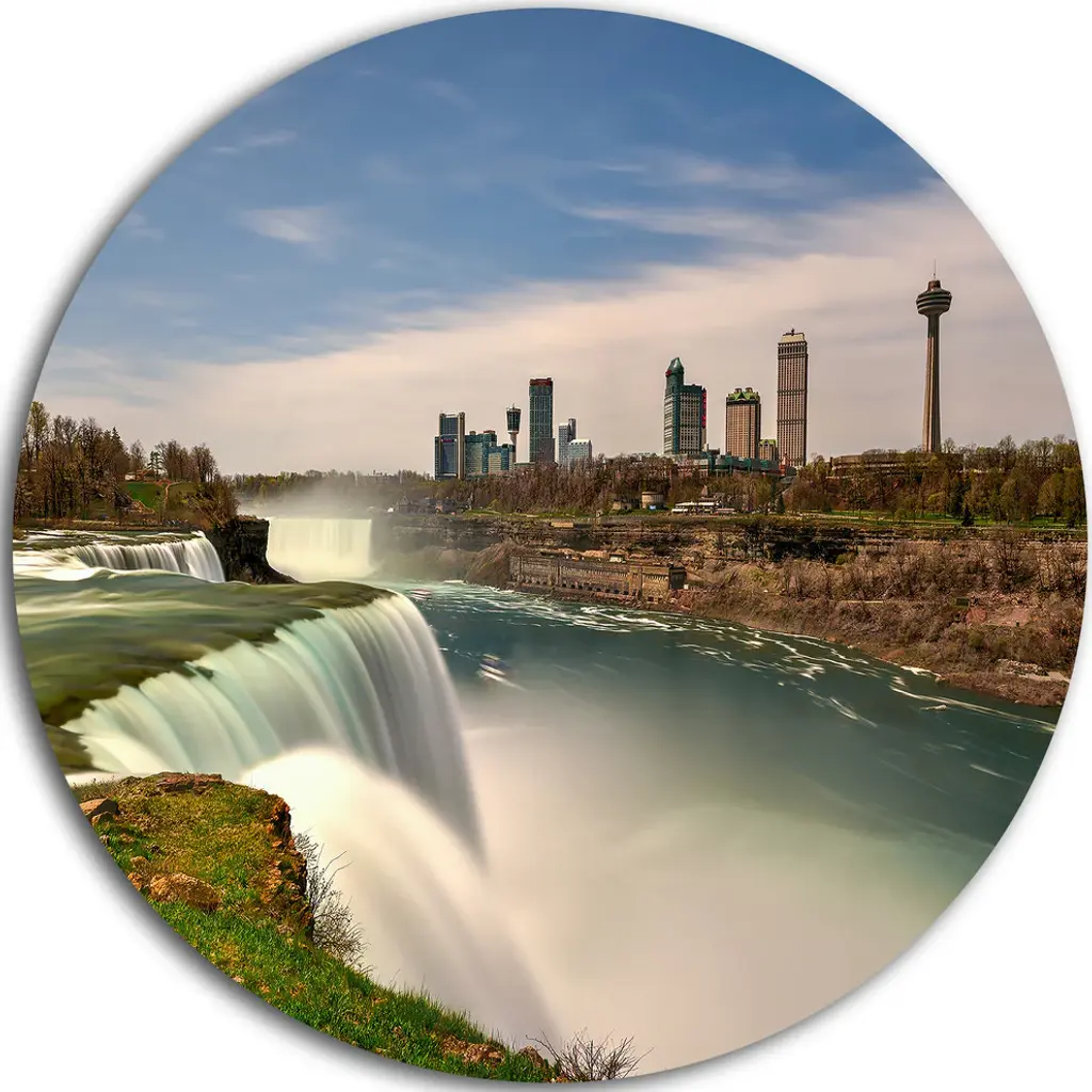 Bring Contemporary Abstraction to your home with this large Circle Metal wall art. This Niagara Falls Goat Island View Metal Artwork makes it the focal point of any room or office. - White Gloss Coating ensures colors are extra vibrant with light reflection.- Aluminum grade Sheet Metal with 1 inch mounting frame on the back giving the illusion that the artwork is floating on the wall..- Mounting Brackets are included along with instructions.- High Quality Digital images are created directly into a glossy aluminum panel producing a stunning and captivating print into the glossy finish of the metal.- Water, Fire and Scratch resistant HD Aluminum panels.- Looks better than any photo paper and guaranteed to last at least 20 years- Easy to clean with a microfiber cloth. Colors are far superior to regular Canvas Art. - Easy to Hang