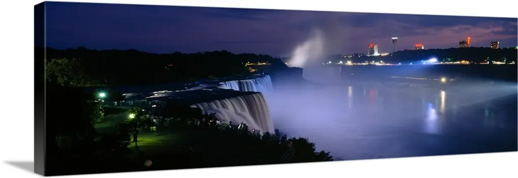Bring contemporary abstraction to your home with this large 36W x 28H Metal Wall Art. This Niagara Falls Viewed from Canada Metal Artwork makes it the focal point of any room or office. - White gloss coating ensures colors are extra vibrant with light reflection.- Aluminum grade sheet metal with 1-inch mounting frame on the back giving the illusion that the artwork is floating on the wall.- Mounting brackets are included along with instructions.- High quality digital images are created directly into a glossy aluminum panel producing a stunning and captivating print into the glossy finish of the metal.- Water, fire and scratch resistant HD aluminum panels.- Looks better than any photo paper and guaranteed to last at least 20 years- Easy to clean with a microfiber cloth. Colors are far superior to regular canvas art. - Easy to hang