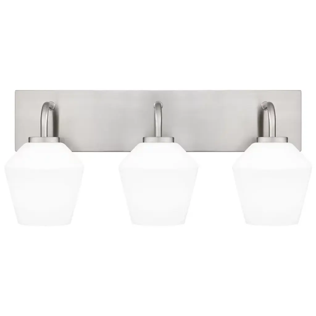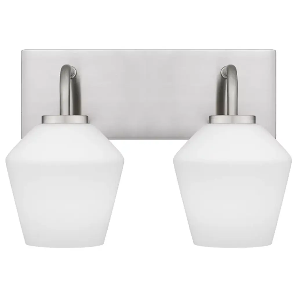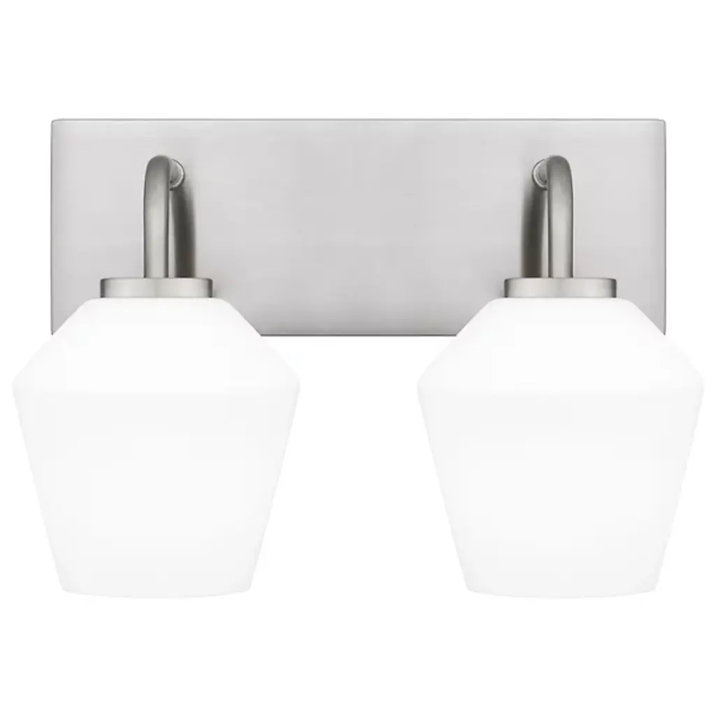 The Nielson Vanity Light from Quoizel combines transitional and mid-century modern aesthetics, forming a refined solution for your grooming routine. Gorgeous shades of opal etched glass are illuminated by brilliant LEDs. Your vanity light is composed of steel for durability. It is rectangularly shaped for a streamlined appearance. It features hardwired installation. Using a separately sold ELV dimmer, you can quickly adjust the brightness level to have just the right ambiance as you beautify.