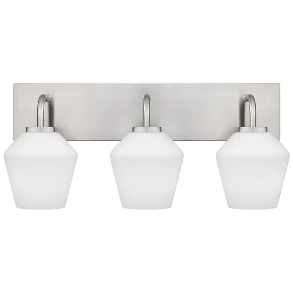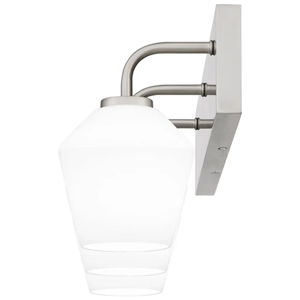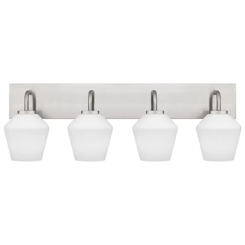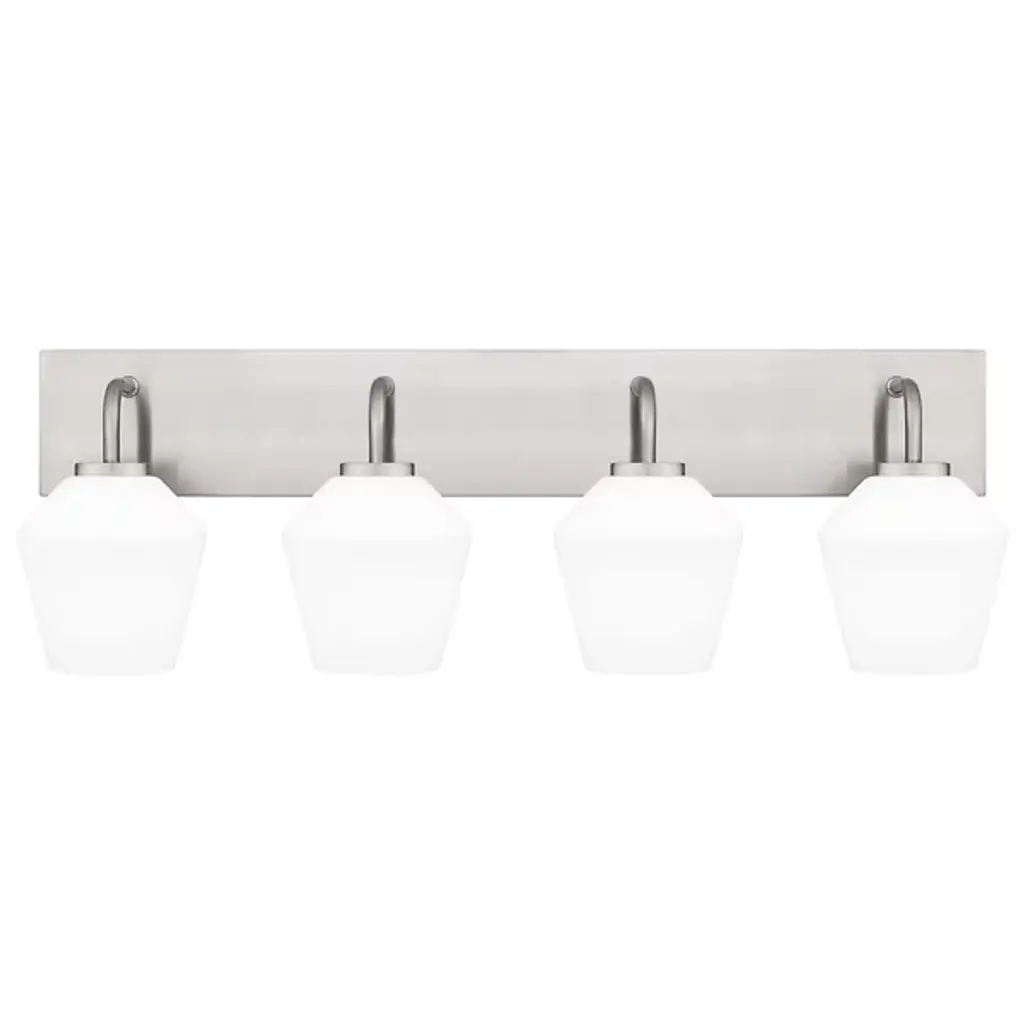 The Nielson Vanity Light from Quoizel combines transitional and mid-century modern aesthetics, forming a refined solution for your grooming routine. Gorgeous shades of opal etched glass are illuminated by brilliant LEDs. Your vanity light is composed of steel for durability. It is rectangularly shaped for a streamlined appearance. It features hardwired installation. Using a separately sold ELV dimmer, you can quickly adjust the brightness level to have just the right ambiance as you beautify.