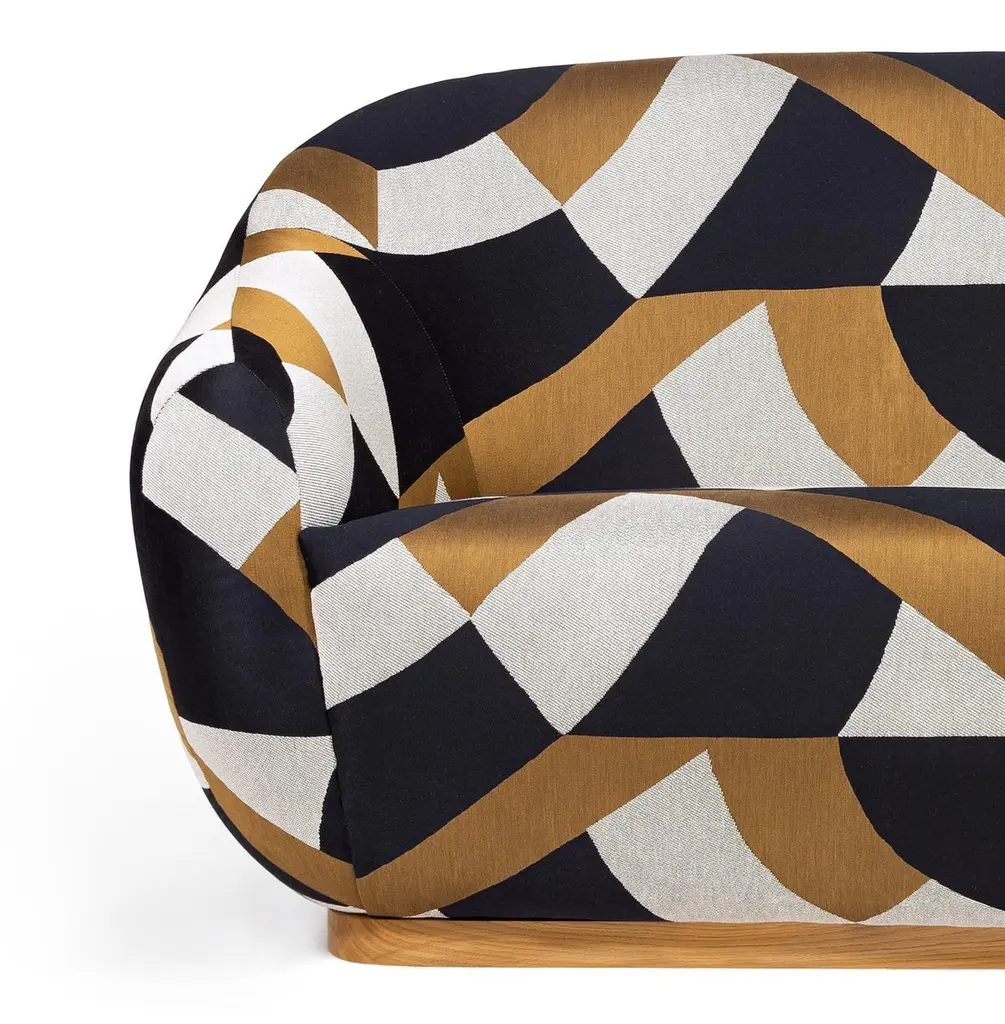 Niemeyer II 2 Seat Sofa by InsidherLandDimensions: D 92 x W 180 x H 86 cm.Materials: Oak, InsidherLand Dalai Ref. 1 fabric.68 kg.Available in different fabrics.The Niemeyer II sofa is named after the Brazilian Architect Oscar Niemeyer whose Architecture was spread like sculptural poetry in the History of humankind. The rounded lines of the sofa are influenced by the remarkable 'Casa das Canoas' designed by Niemeyer in 1951.Looking on the human scale point of view, the house glass facade disappears within the tropical forest, however, from an aerial view, the sculpted concrete flat roof floating on pillars stands out in the landscape.The flat roof offers its flowing forms to the round velvet seat while the pillars share their black tone with the darkened oak legs.In detail, the sofa is focused on the roof indented front curve framing a large granite boulder. It is precisely that backward curved movement that we discover in the seams of the meticulous upholstered work that flows all around the arms of the sofa.Created by Architect Joana Santos Barbosa in 2012, InsidherLand is a Portuguese brand of exclusive design. Drawn with the signature of the creator, the impressive range of contemporary luxury furniture, lighting, upholstery and accessories are connected to her personal memories and have been highlighted for their innovative and soulful designs.Joana explores several influences from travels around the world to define her own Land as a place that allows her to translate her perceptions into objects of art.The essence of InsidherLand is presented by two inspiring collections. Beyond Memory Collection is deeply influenced by organic forms of nature, legends and traditional cultures, as for the Identity Collection is molded by forms of Architecture and Art. Both collections are designed as a dialog in which nature meets strong architectural lines to create relaxed and sophisticated interiors surrounded by natural materials and meaningful art pieces.Being positioned in strategic markets of high-end luxury decoration, InsidherLand team is proud of working with the best architects and interior design studios from all over the world who seek for handmade exclusive objects that arouse emotions and stand out in exquisite spaces.We are dedicated with love and enthusiasm into every creation to surprise a sensitive but demanding public. Using the expertise of traditional craft techniques, all creations are made by the hands of Portuguese master craftsmen and jewelers who wisely sculpt them in noble materials, finalizing every detail with elegance and perfection.