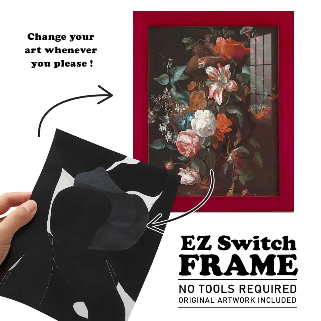 Night Bloom I -EZ SWITCH Framed Print w/glass-Cherry Red A delightful, framed print. Featuring a solid wood frame with real wood glass. This premium print is giclee quality. In addition, every frame features a removable back and table top stand. This allows you to change your art in the future or to just stand the art on a table for a new look. We are sure you'll enjoy our new series of EZ SWITCH Framed Art. Solid Wood Frame Real Glass Removable / Replaceable Art Built in Tabletop Stand Sizes range from 4x6 up to 12x15 - buy just one or pair them up as sets as you see fit.