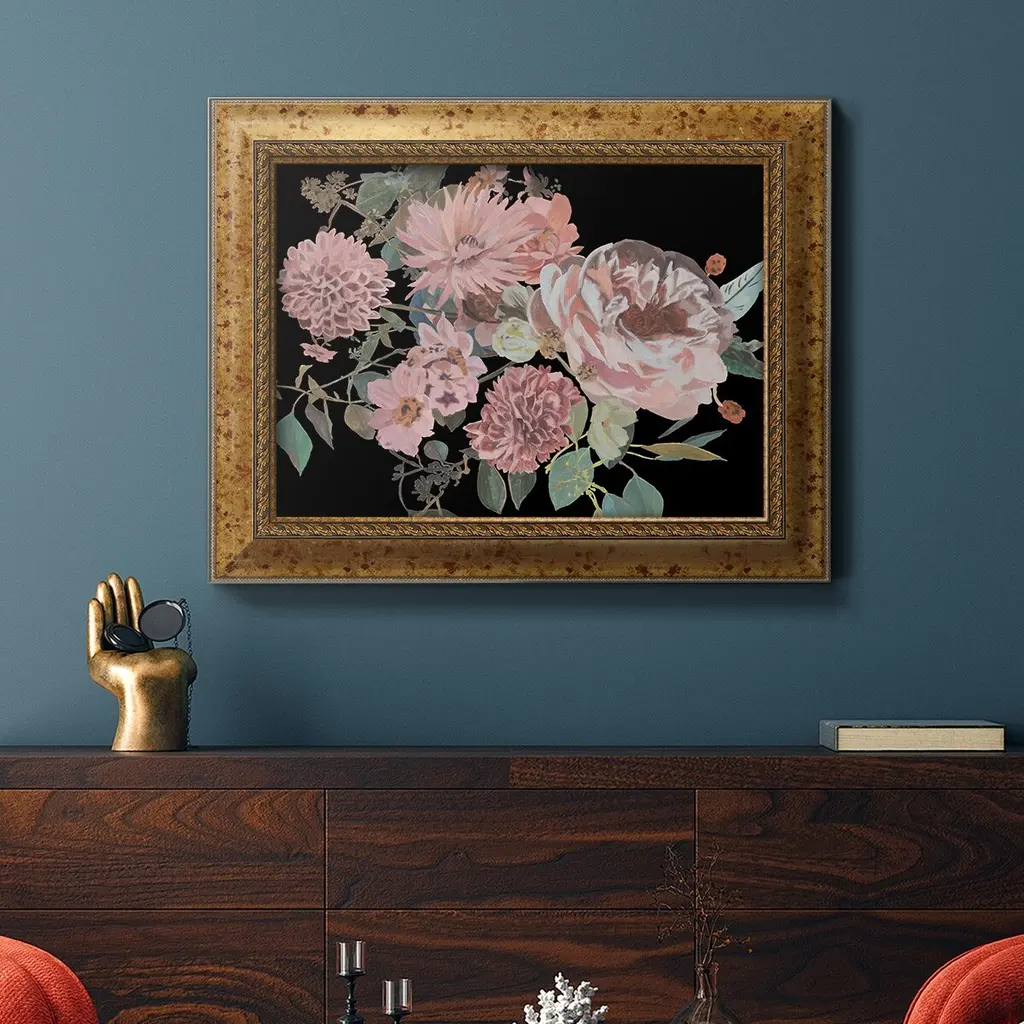 Night Blooming Flowers I Premium Framed Canvas- Ready to Hang A Premium Framed Canvas created to last. Framed in distressed wood and available in an array of sizes and colors Featuring a beveled a solid wood stretcher bar, each piece comes ready to hand 3 SIZES AVAILABLE 16''X20'' - Overall Size 18'X27'' - Overall Size 24''x36'' - Overall Size Each piece is made to order. Each piece comes with hanging hardware. Made in the USA Ready to Hang Giclee Paper Print Acrylic Glass Beveled Matt Board