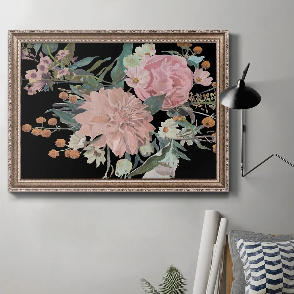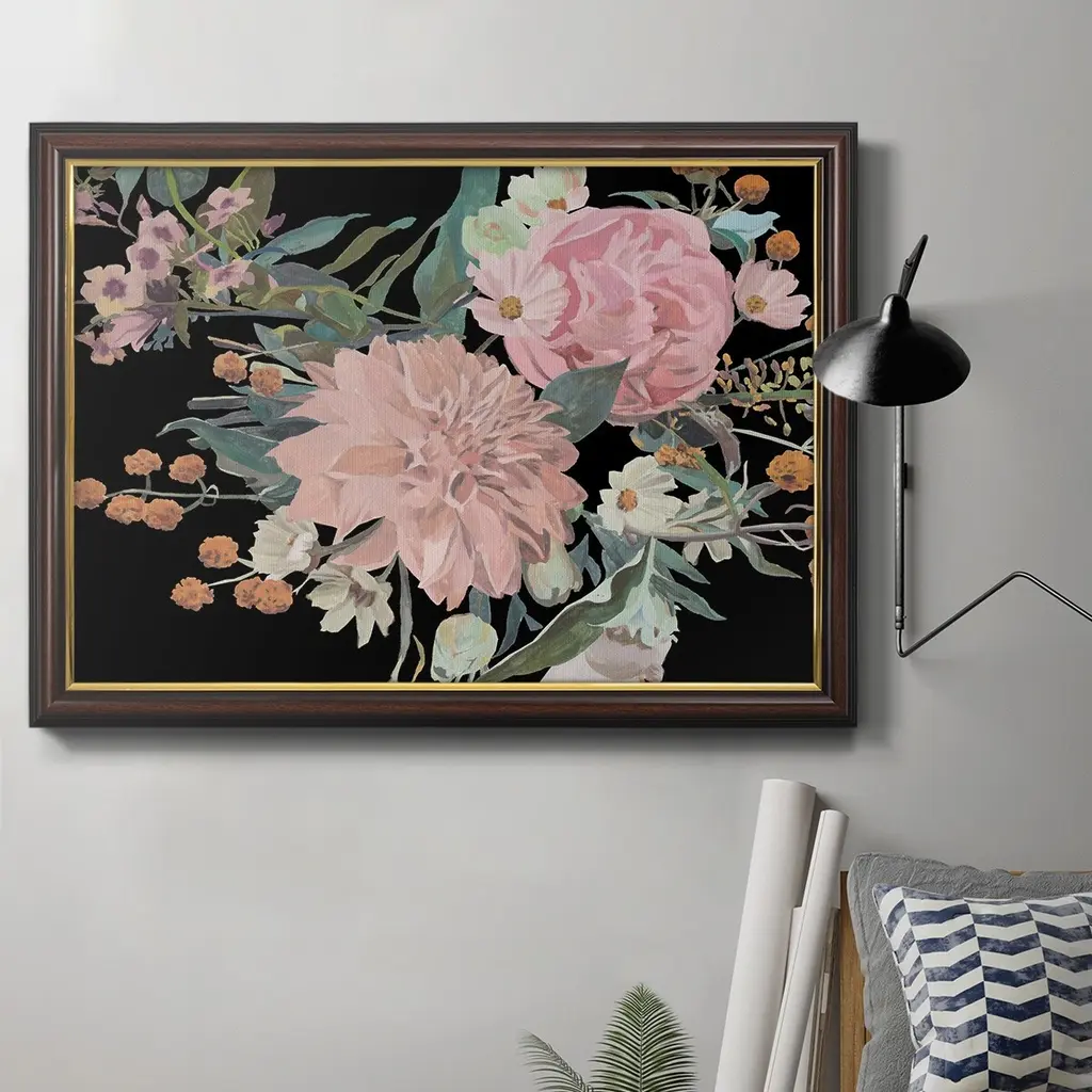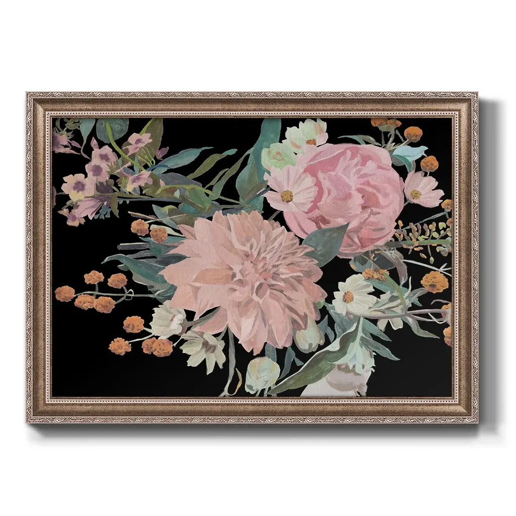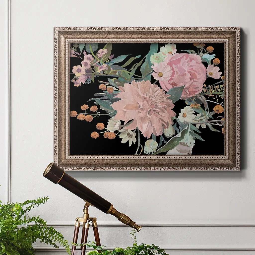 Night Blooming Flowers II Premium Framed Canvas- Ready to Hang A Premium Framed Canvas created to last. Framed in distressed wood and available in an array of sizes and colors Featuring a beveled a solid wood stretcher bar, each piece comes ready to hand 3 SIZES AVAILABLE 16''X20'' - Overall Size 18'X27'' - Overall Size 24''x36'' - Overall Size Each piece is made to order. Each piece comes with hanging hardware. Made in the USA Ready to Hang Giclee Paper Print Acrylic Glass Beveled Matt Board