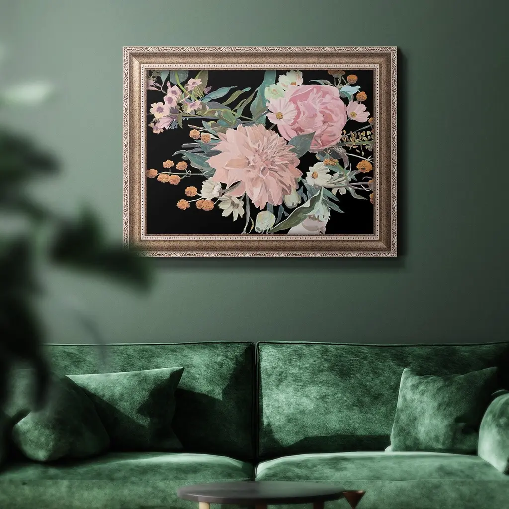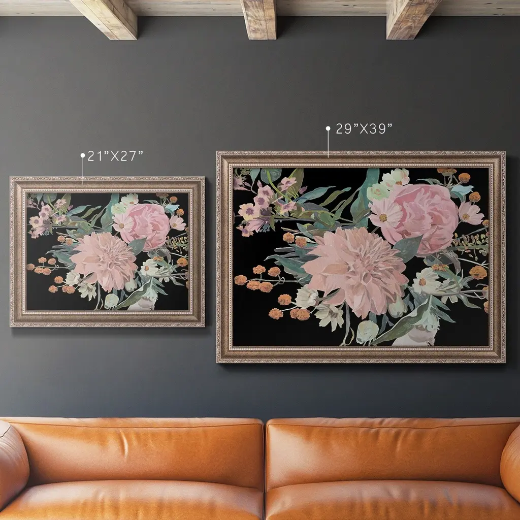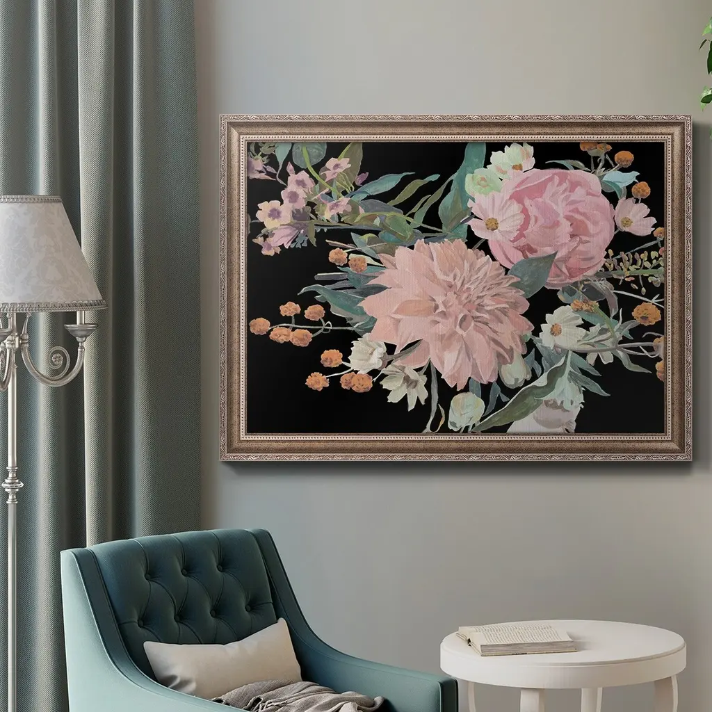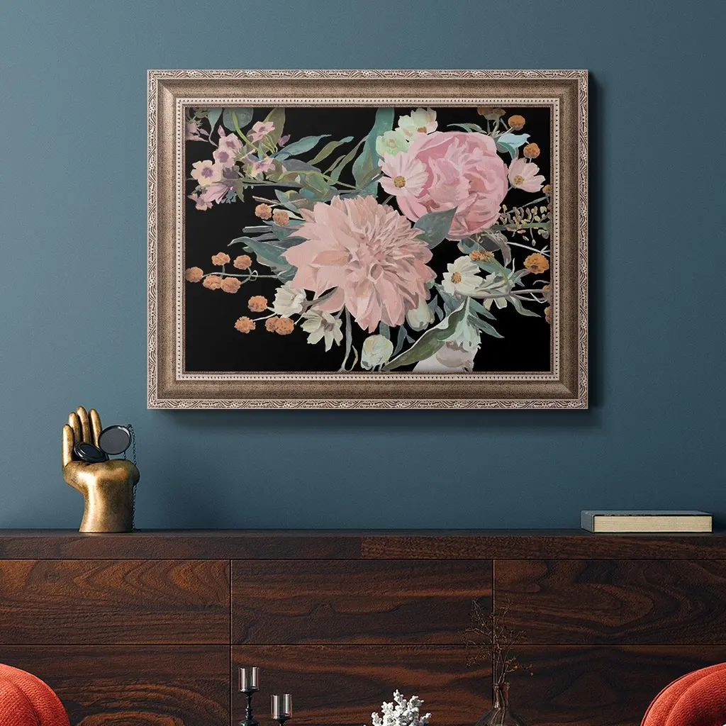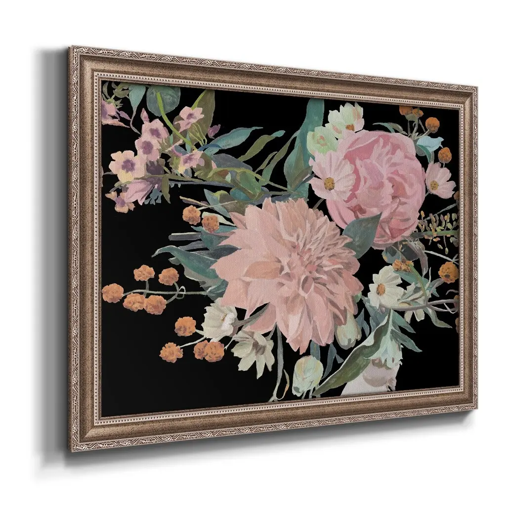 Night Blooming Flowers II Premium Framed Canvas- Ready to Hang A Premium Framed Canvas created to last. Framed in distressed wood and available in an array of sizes and colors Featuring a beveled a solid wood stretcher bar, each piece comes ready to hand 3 SIZES AVAILABLE 16''X20'' - Overall Size 18'X27'' - Overall Size 24''x36'' - Overall Size Each piece is made to order. Each piece comes with hanging hardware. Made in the USA Ready to Hang Giclee Paper Print Acrylic Glass Beveled Matt Board