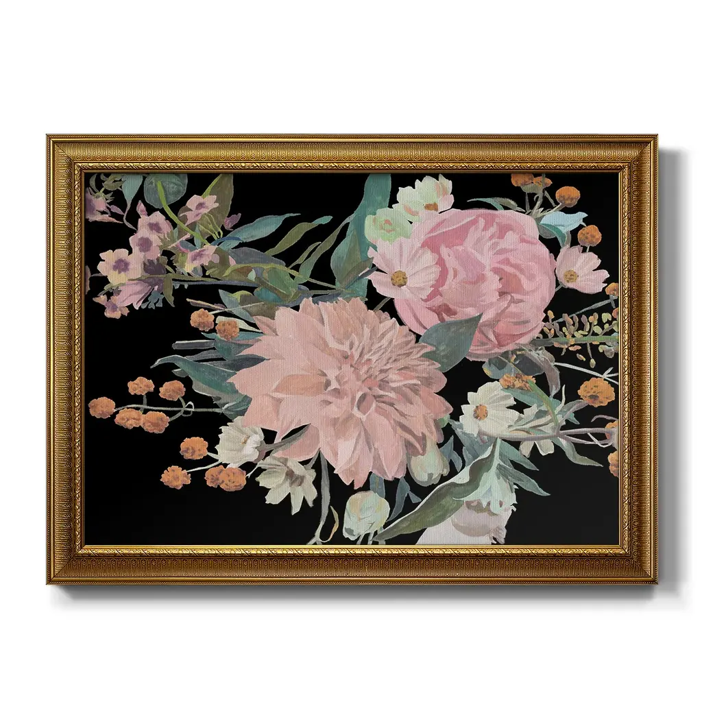 Night Blooming Flowers II Premium Framed Canvas- Ready to Hang A Premium Framed Canvas created to last. Framed in distressed wood and available in an array of sizes and colors Featuring a beveled a solid wood stretcher bar, each piece comes ready to hand 3 SIZES AVAILABLE 16''X20'' - Overall Size 18'X27'' - Overall Size 24''x36'' - Overall Size Each piece is made to order. Each piece comes with hanging hardware. Made in the USA Ready to Hang Giclee Paper Print Acrylic Glass Beveled Matt Board