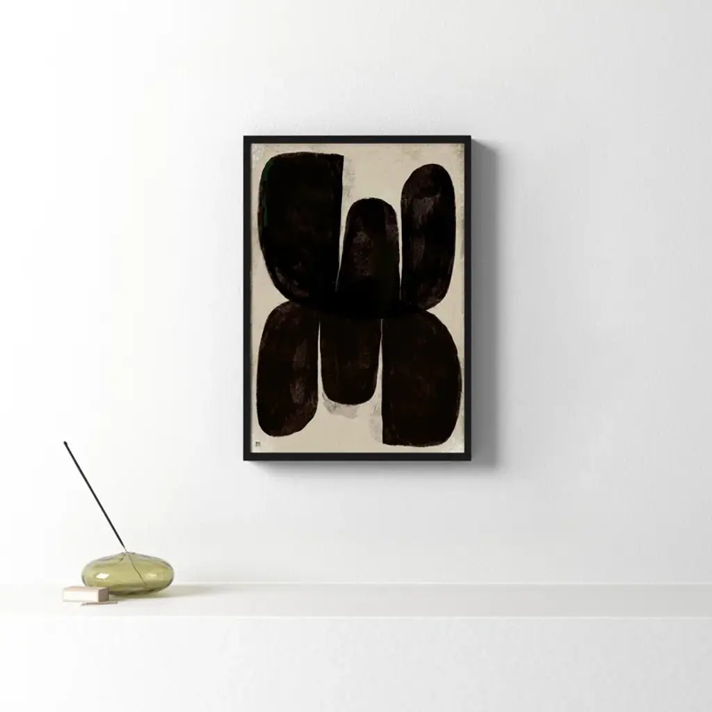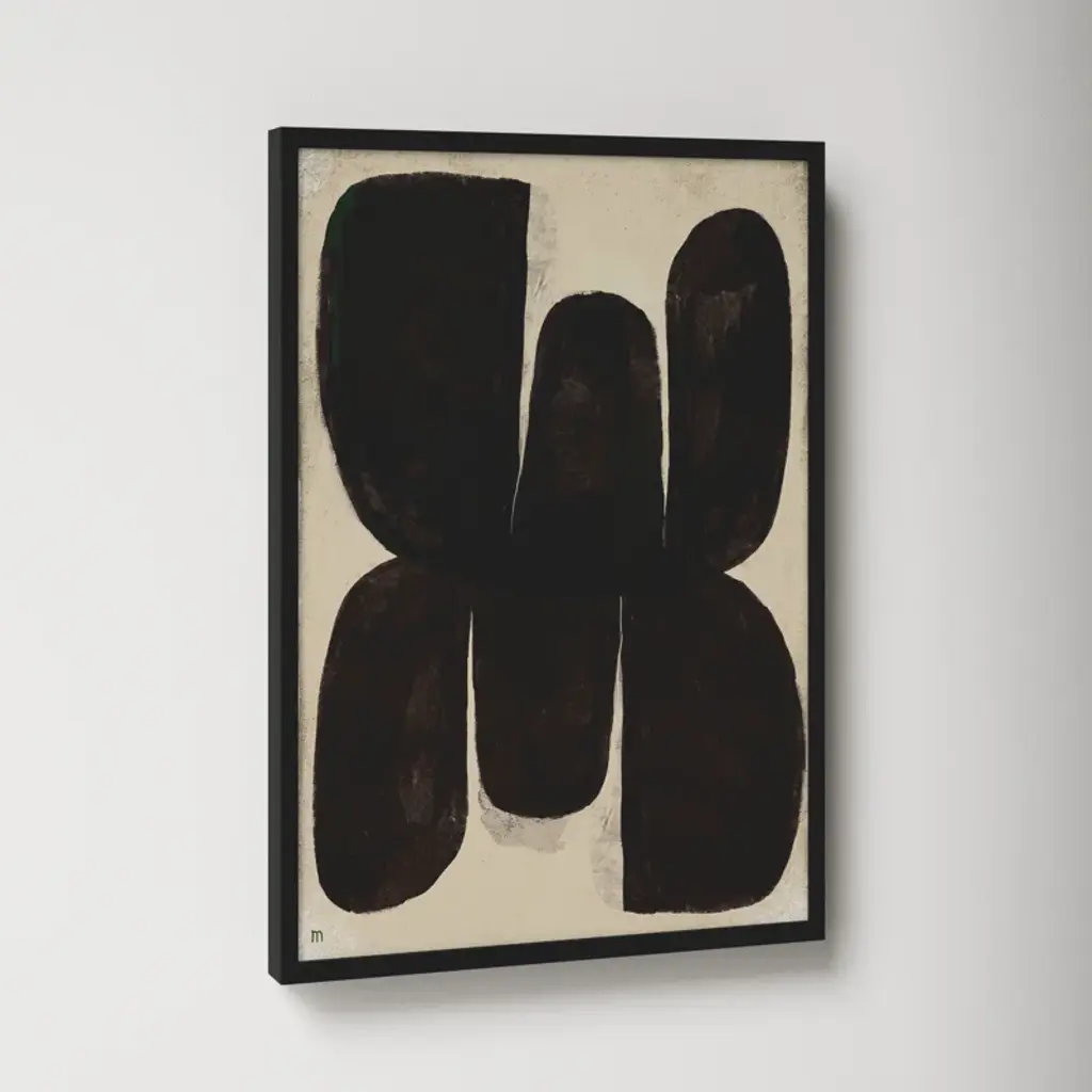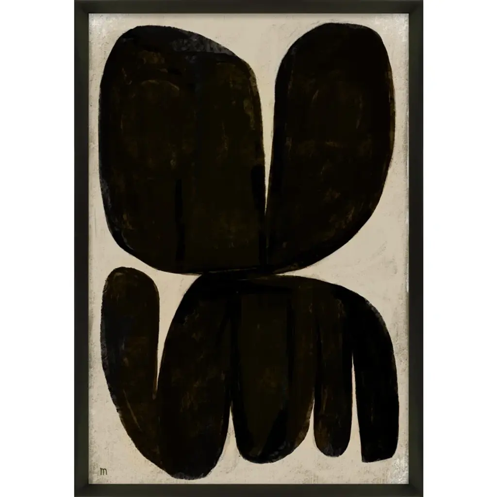 Night Butterfly. A reproduction of a digital artwork, this piece is defined by its soft + organic abstract forms, painterly texture, and moody monochrome palette. It’s printed on paper in the USA, and arrives in a wooden frame with included hanging hardware.