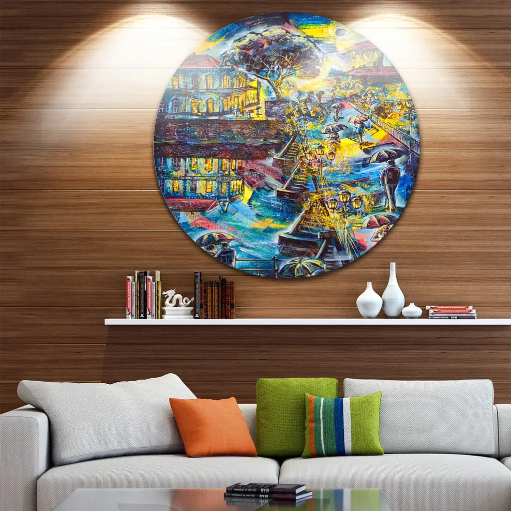 Night City Graphics Art, Cityscape Round Wall Art, 38"